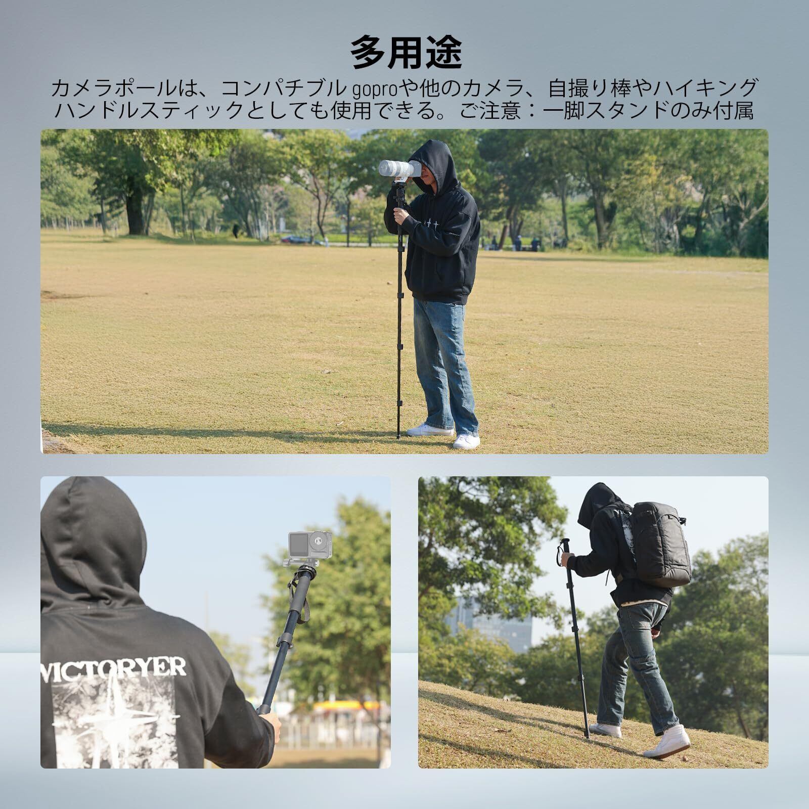 【多彩な用途】カメラポールはコンパチブル goproや他のカメラ、自撮り棒、ハイキングハンドルスティックやトレッキングポールとしても使え、さらには便利なゴルフ一脚としても使用でき、屋外探索、友人との自撮り、ビデオブログ、または素晴らしい風景の撮影に欠かせない多用途のコンテンツ クリエーターです。