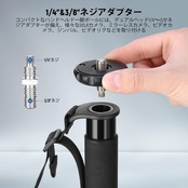 ■【便利なネジアダプター付き!】1/4" 及び 3/8"ネジアダプターが付属しており、さまざまなカメラやアクセサリーに簡単に取り付けることができます。これにより、あなたの機材の選択肢が広がり、撮影の幅が大きく広がります。