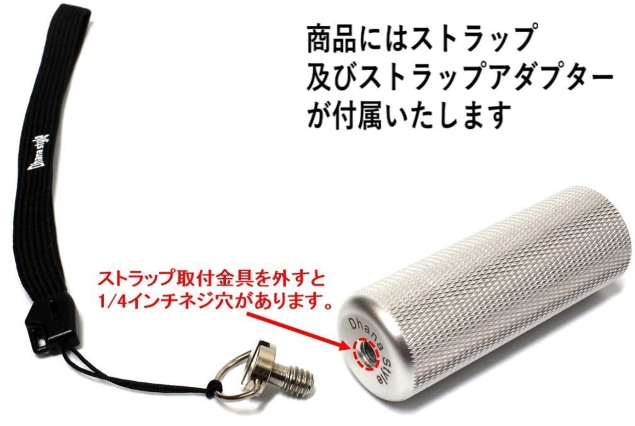 【大きさ】長さ;7.2cm 直径;2.4cm 【ネジ サイズ】1/4インチ (トップのオス、ボトム のメス とも同サイズ) 【材質】グリップ;アルミ 、 台座部;ラバー