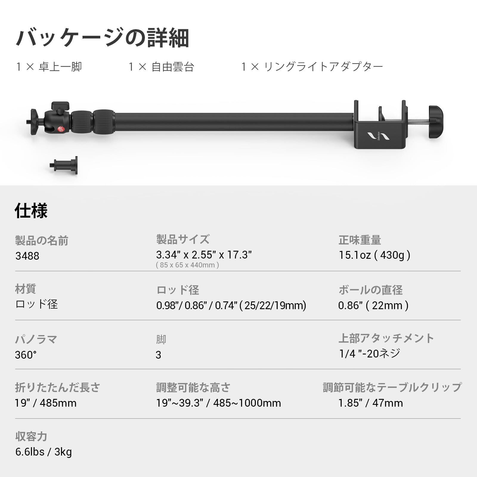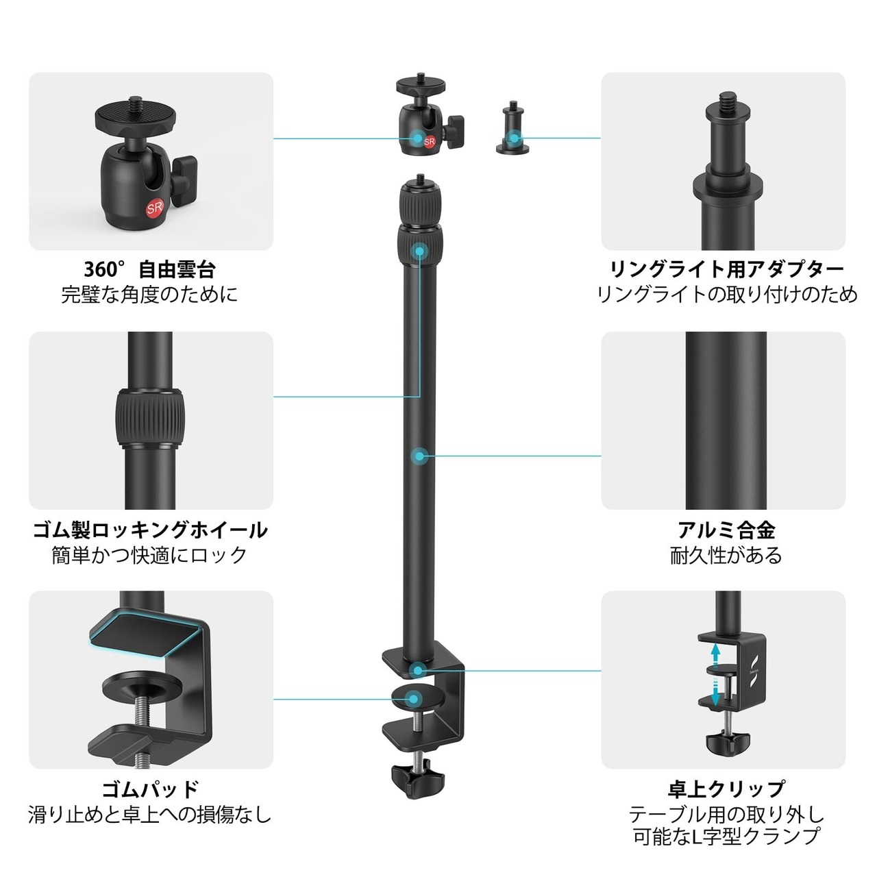 【卓上一脚】自由雲台とリングライトアダプターが装備されており、リングライト、デジタル、一眼レフカメラ、スマートフォン、パネルライトなどに最適です。メイクアップ、動画撮影、写真などの撮影作業に使用されます。
