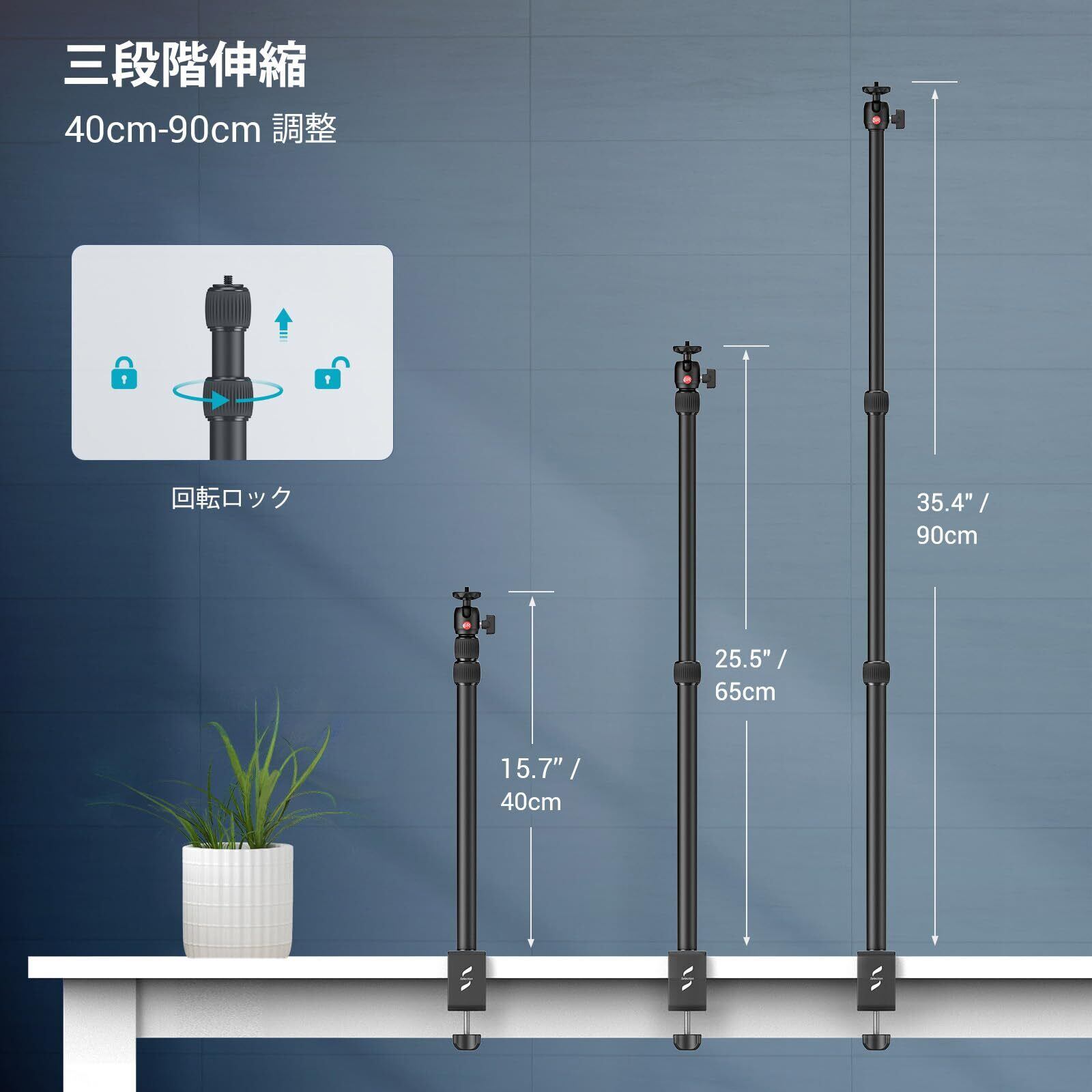 【三段階伸縮】3段階伸縮ポールデザインを採用し、高さは35.4cm-90cmの範囲で調整できるため、撮影や照明などが可能です。ゴムリングの蝶ナットは、ポールをより簡単に固定するのに役立ちます。