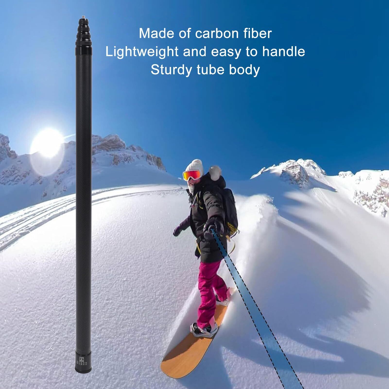 2。任意の長さで拡張可能:69〜500cmの長さの範囲で、この9セクションのカーボンファイバー拡張ポールは、多様な視点と角度をキャプチャするための柔軟性を提供します。 2ウェイインターフェイス:電話クリップ、アクションカメラ、写真ライト、三脚、吸引カップ、またはモノポッドを接続するための下部1/4インチのネジ穴のための上部1/4インチネジ。機器の取り付けの柔軟性と安定性を提供します。炭素繊維材料:強度と靭性を組み合わせた8層の炭素繊維で作られたセルフィーポールは、頑丈で錆びません。 30mmの最大チューブ直径は、耐久性と軽量設計を促進します。