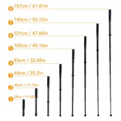 ■【最大61.81インチまで調整可能!】8つのセクションからなる伸縮機能により、最大61.81インチ(約157cm)まで高さを調整できます。お好みの高さに簡単に設定でき、あらゆる撮影シーンに対応します!