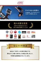 ヴァイテックグループが送りだすイノベイティブ三脚ブランド ■JOBYは、マンフロット・ジッツオを取り扱うイタリアのヴァイテックグループが送りだすイノベイティブ三脚ブランドです。