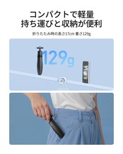 【超軽量ポータブル設計】 わずか129gの軽量設計で、折りたたみ時の長さは17cm。バックパック、ポケット、カメラバッグに簡単に収納可能。日常の移動、アウトドア冒険、旅行撮影など、あらゆるシーンで持ち運び可能です。コンパクトなサイズと軽量設計の完璧な組み合わせで、いつでもどこでも素晴らしい瞬間を捉えることができます。