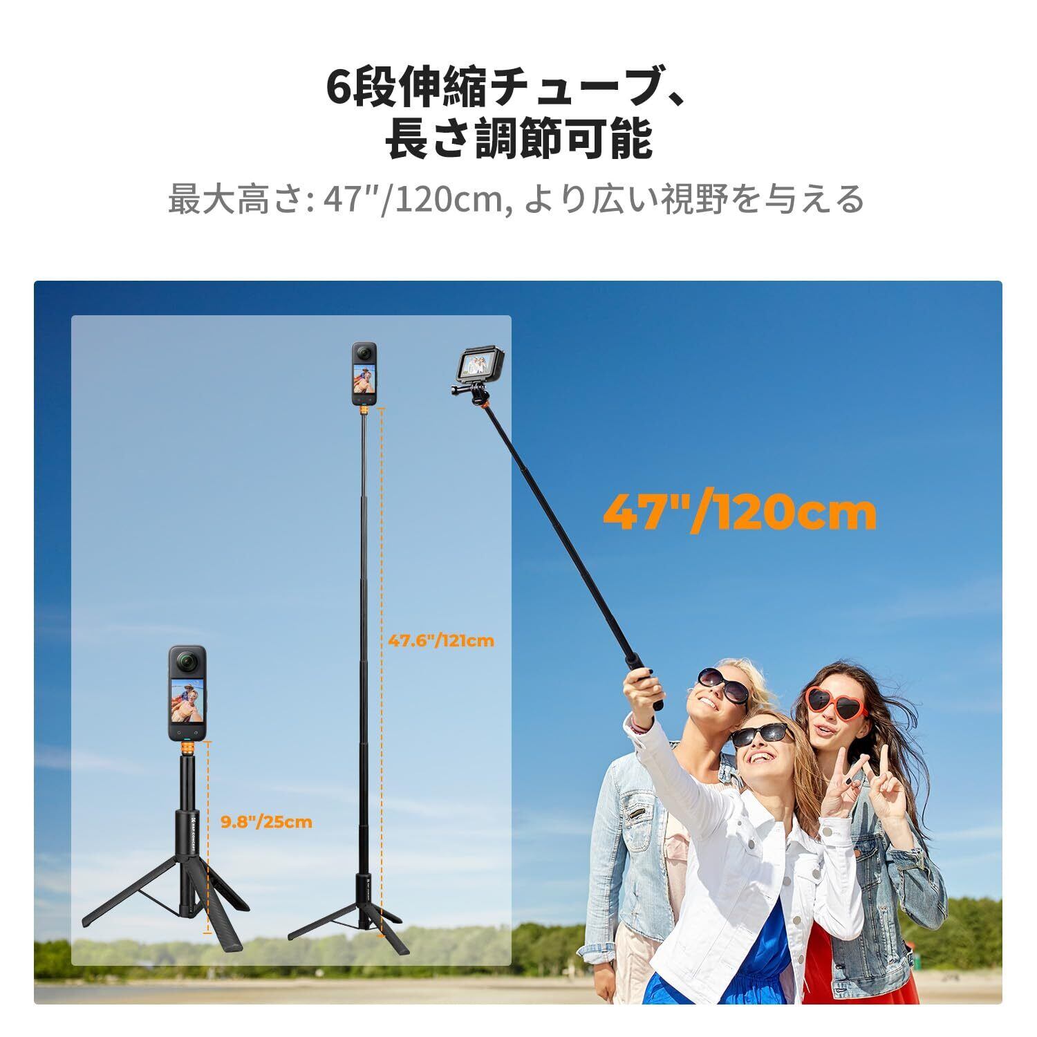 K&F Concept セルフィー棒三脚(Insta360 X5に対応)、アダプター付き目立たないセルフィー棒、伸縮式セルフィー棒(Insta 360 X5/Ace/Ace Pro/X4/X3/ONE X2/ONE X、DJI Osmo Pocket 3、AKASOアクションカメラに対応)
