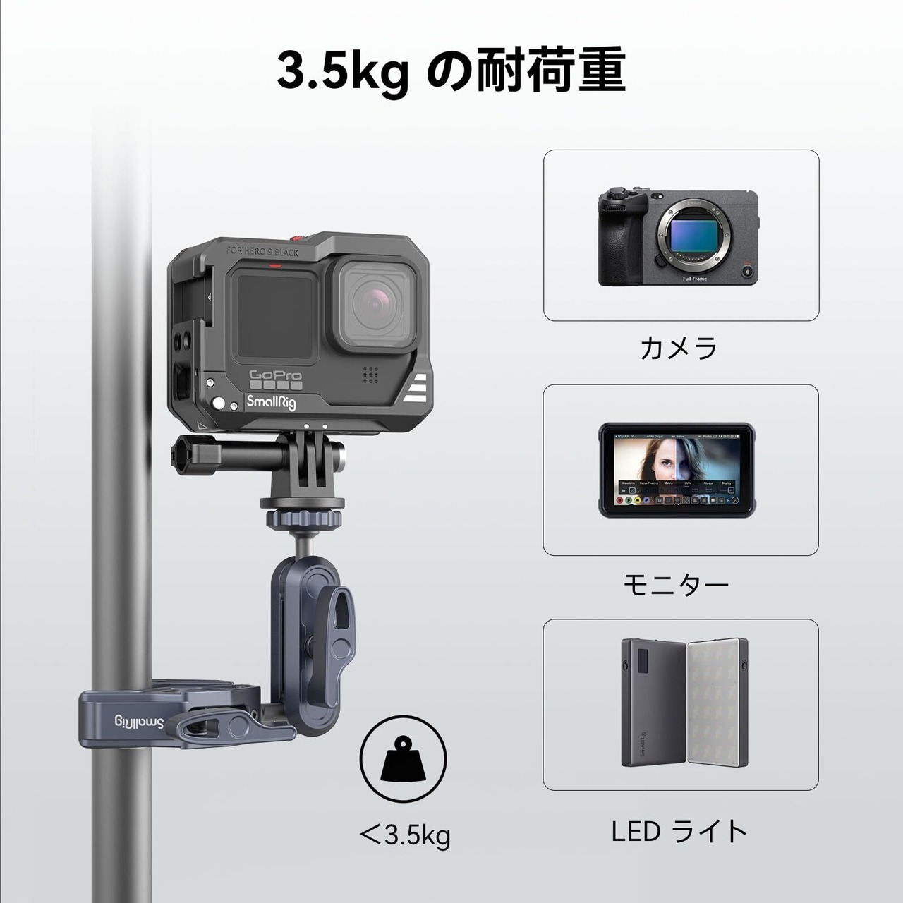 【耐荷重】最大耐荷重は 7.7 ポンド (3.5 kg) で、ほとんどのカメラ用アクセサリーに対応します。