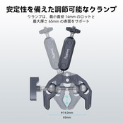 ■【強力な固定力と安心の設計!】このスーパークランプは、1/4インチネジを採用しており、軽量にもかかわらず高い固定力を誇ります。蟹バサミクランプの仕組みでしっかりと固定し、緩み防止機能も備わっているため、安心して撮影をお楽しみいただけます。