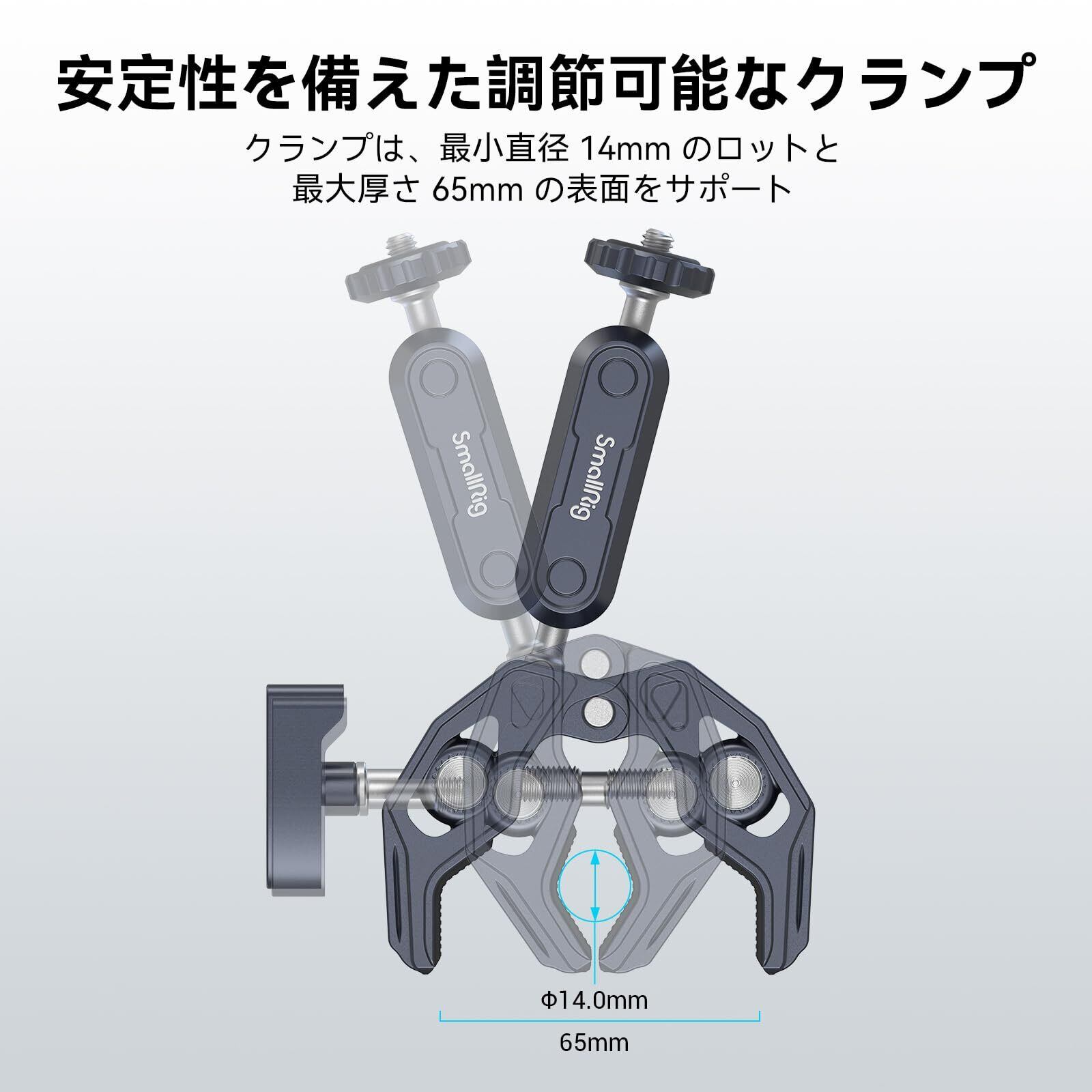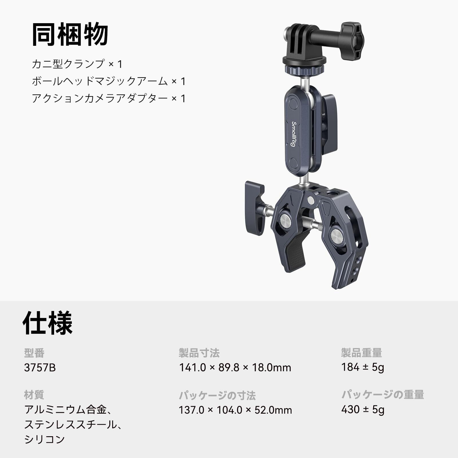 【在庫限り】SmallRig スーパークランプ ボールヘッド マジックアーム 蟹バサミクランプ 緩み防止 360度回転 1/4''ネジ 偏向防止 雲台/撮影 LEDライト用 モニター外付け用 バイク ベストアングル プロジェクター ウェブカメラに対応 スモールリグ 3757B