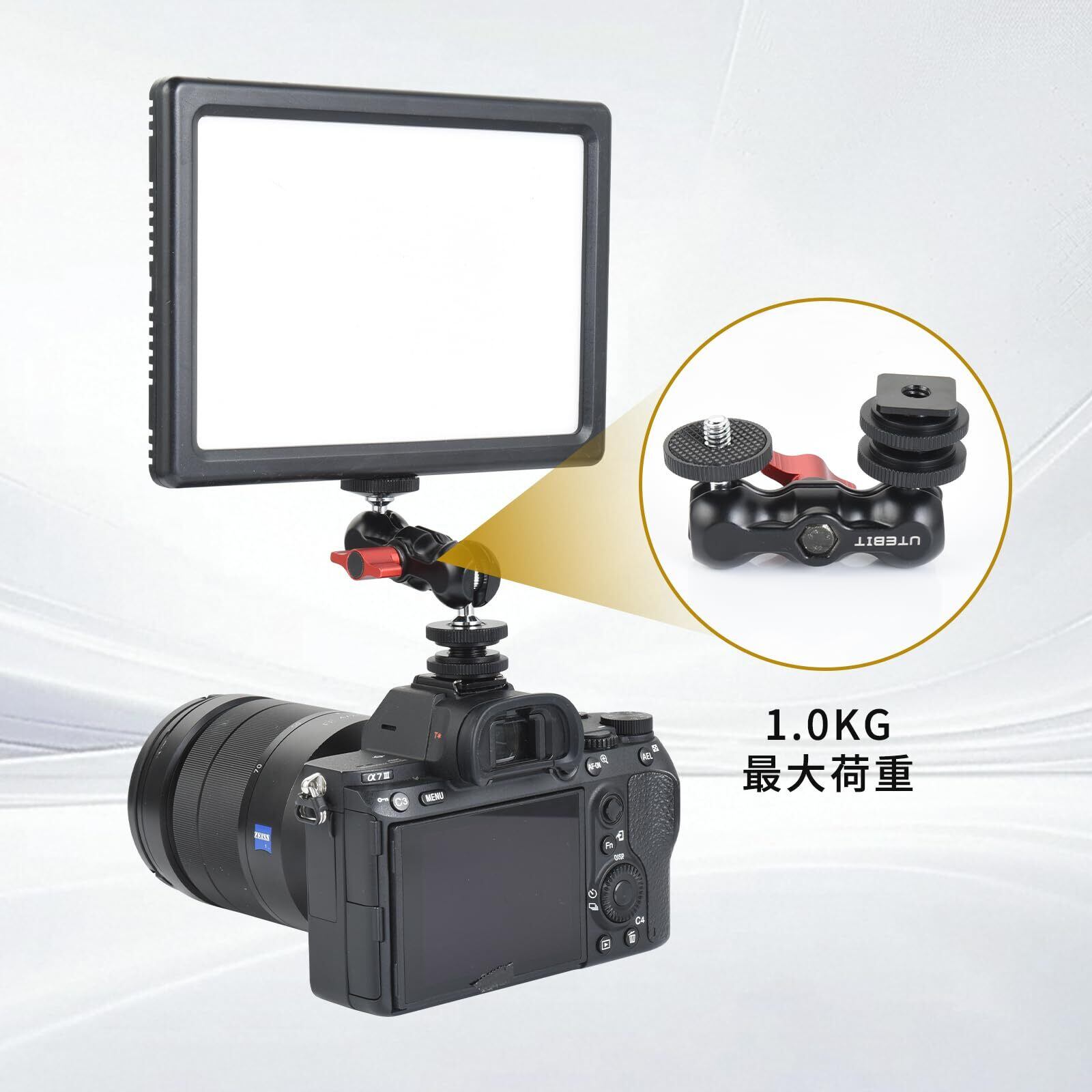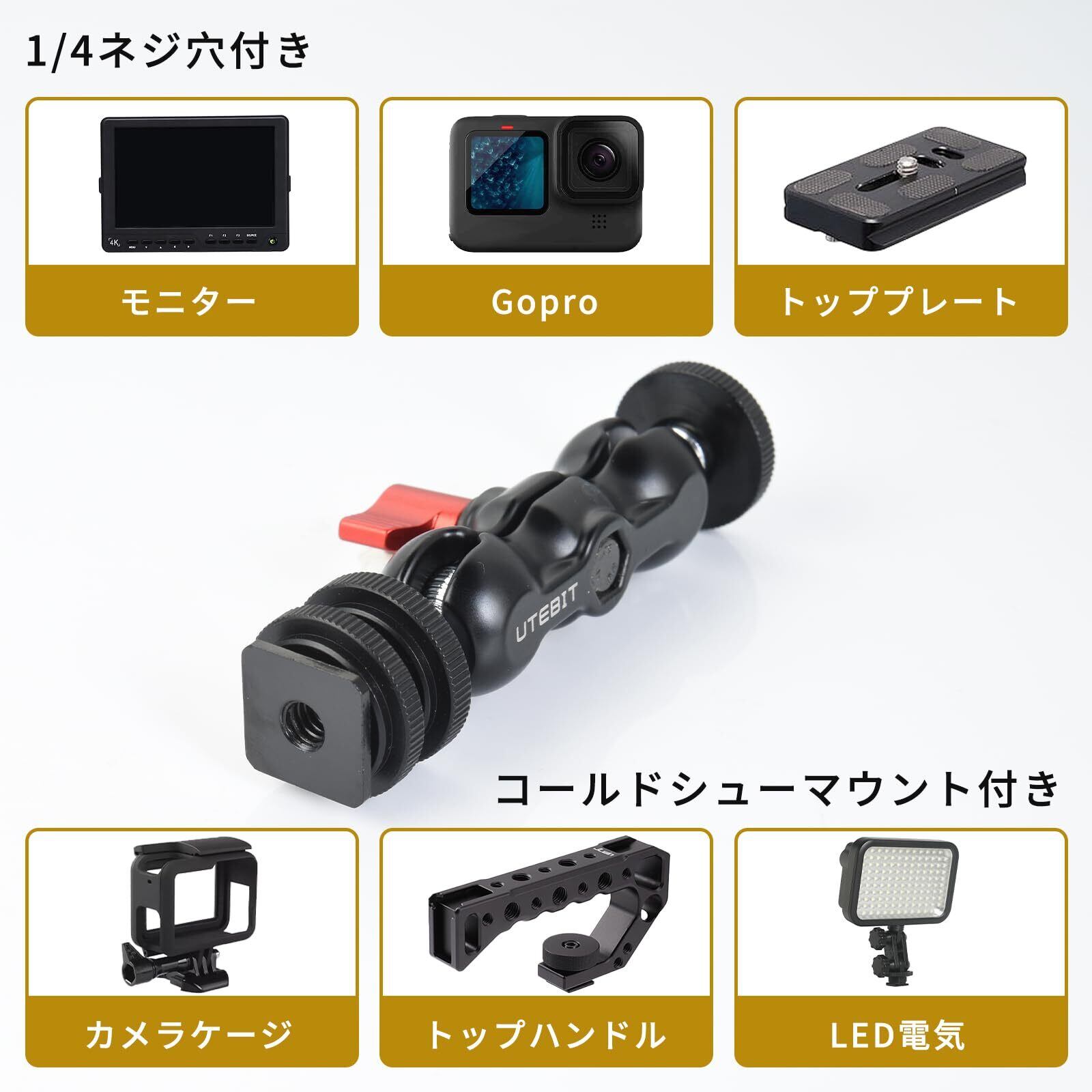 UTEBIT マジックアーム 10.3CM コールドシュー付き ダブルボールヘッド コールドシューアダプター 1/4インチネジ付き 延長アーム コールドシューアーム 耐荷重1kg アルミ合金製 180°調整可能