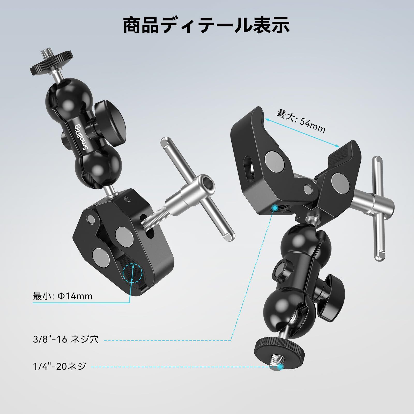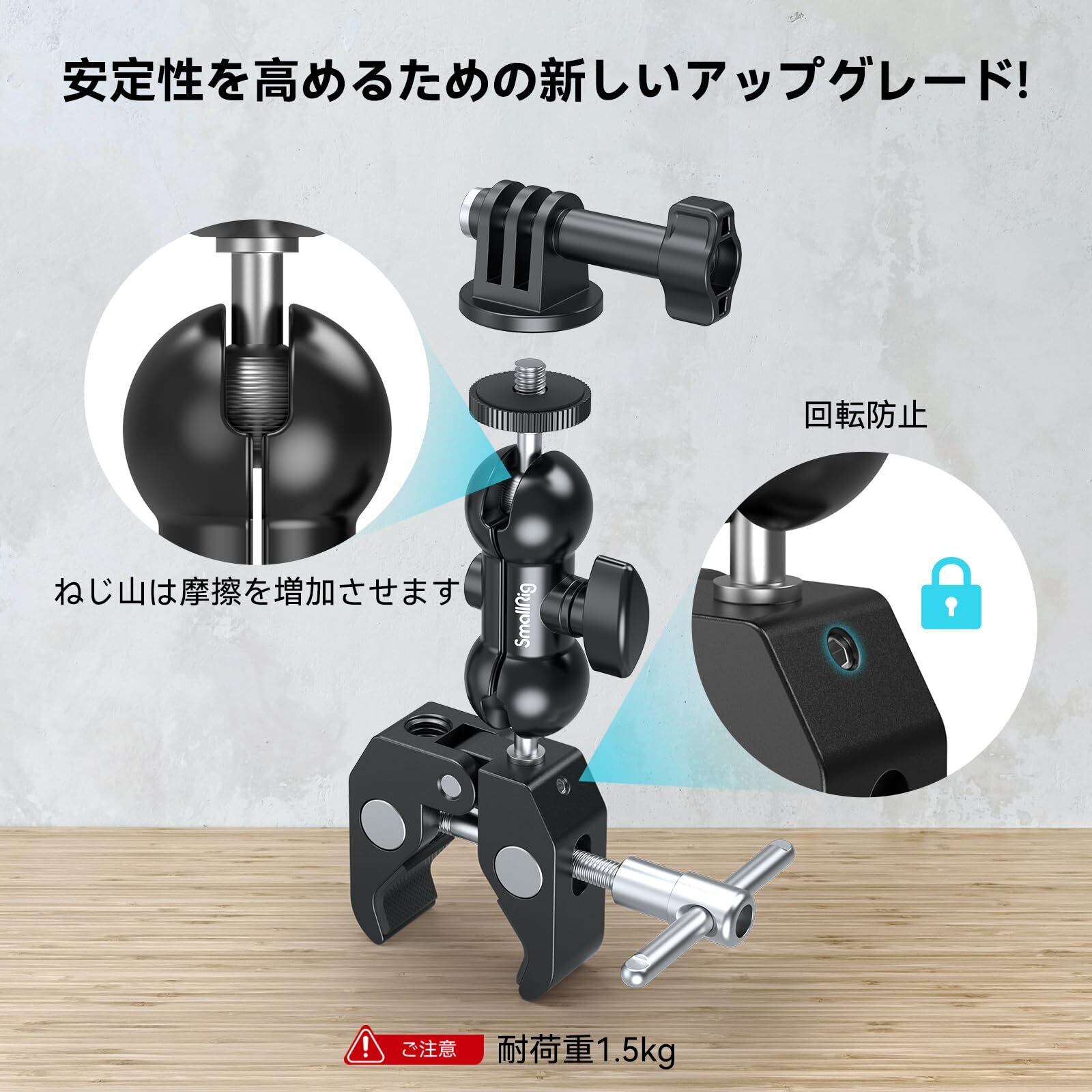 【特別価格】SmallRig スーパークランプ マジックアーム付き蟹バサミクランプキット 耐荷重1.5kgまで ボールヘッドアーム 緩み防止 ビデオカメラサポート DJI Ronin用/FREEFLY MOVI Pro用/30mm ポールなど対応 デスク バイク ベストアングル ウェブカメラ対応 1138B