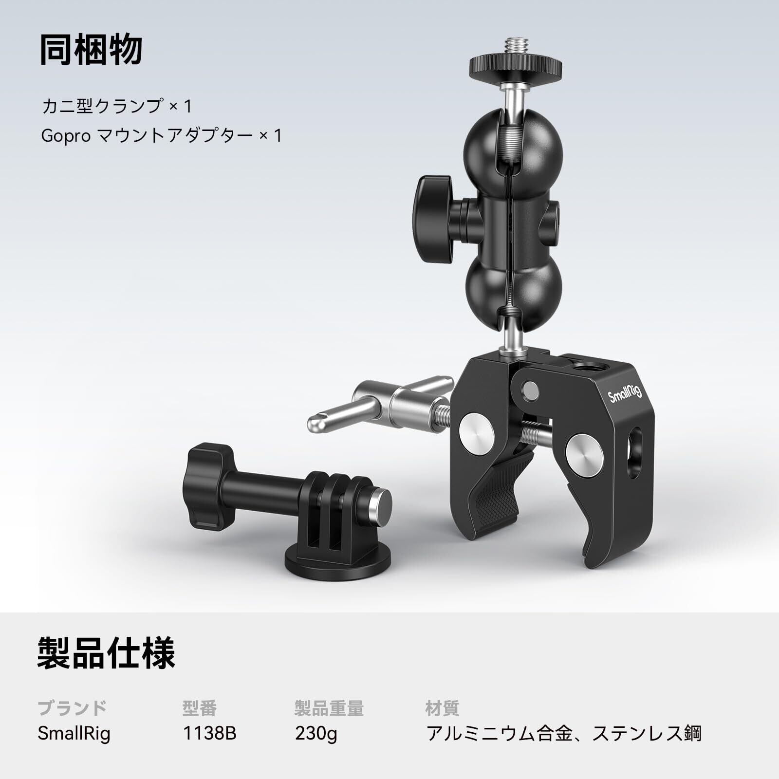 SmallRig スーパークランプ マジックアーム付き蟹バサミクランプキット 耐荷重1.5kgまで ボールヘッドアーム 緩み防止 ビデオカメラサポート DJI Ronin用/FREEFLY MOVI Pro用/30mm ポールなど対応 デスク バイク ベストアングル ウェブカメラ対応 1138B