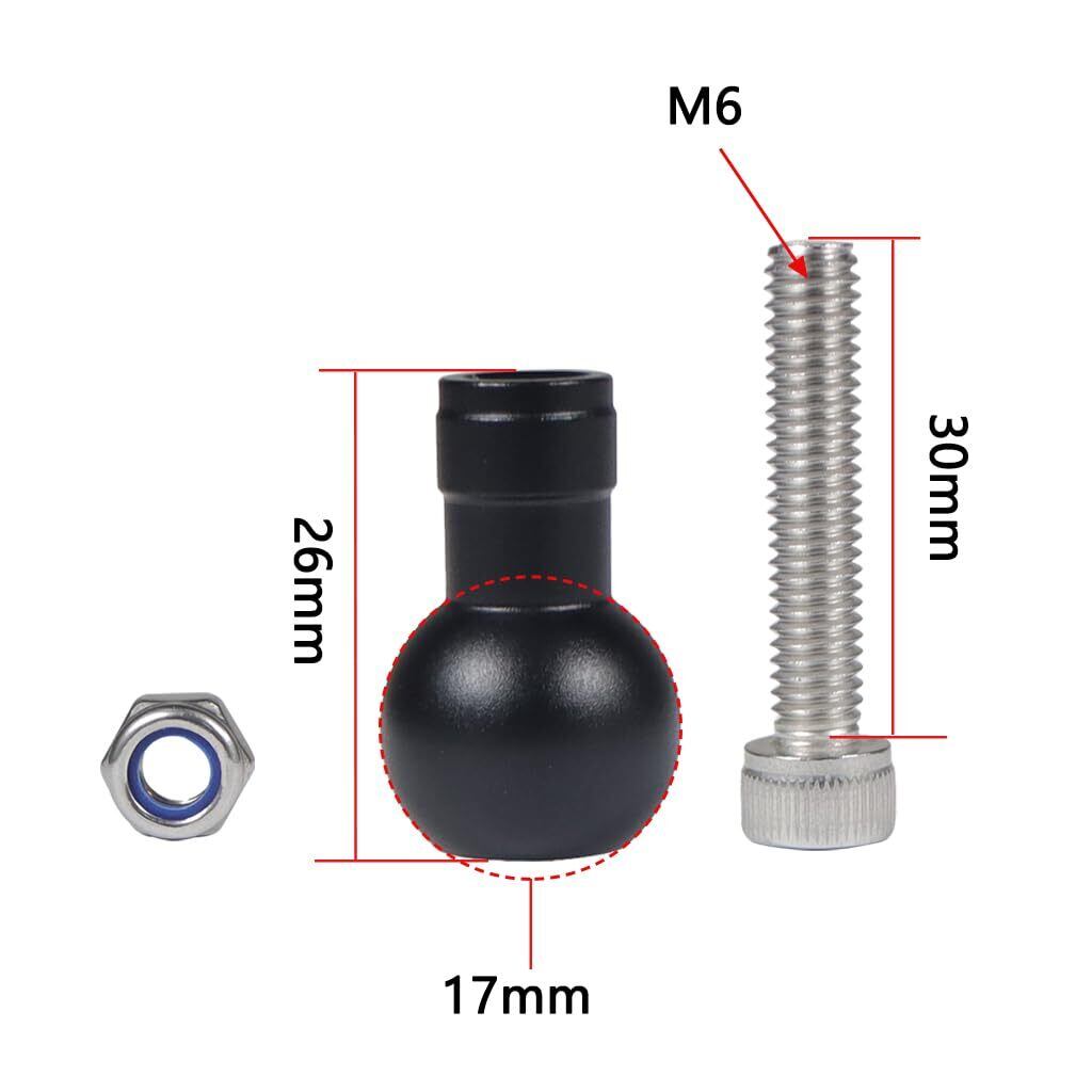 NovelGoal アルミニウム 17mm 拡張ボールヘッド M6スクリューボールヘッド 三脚用 自撮りハンドルグリップスタンド ボールマウントコンバーター