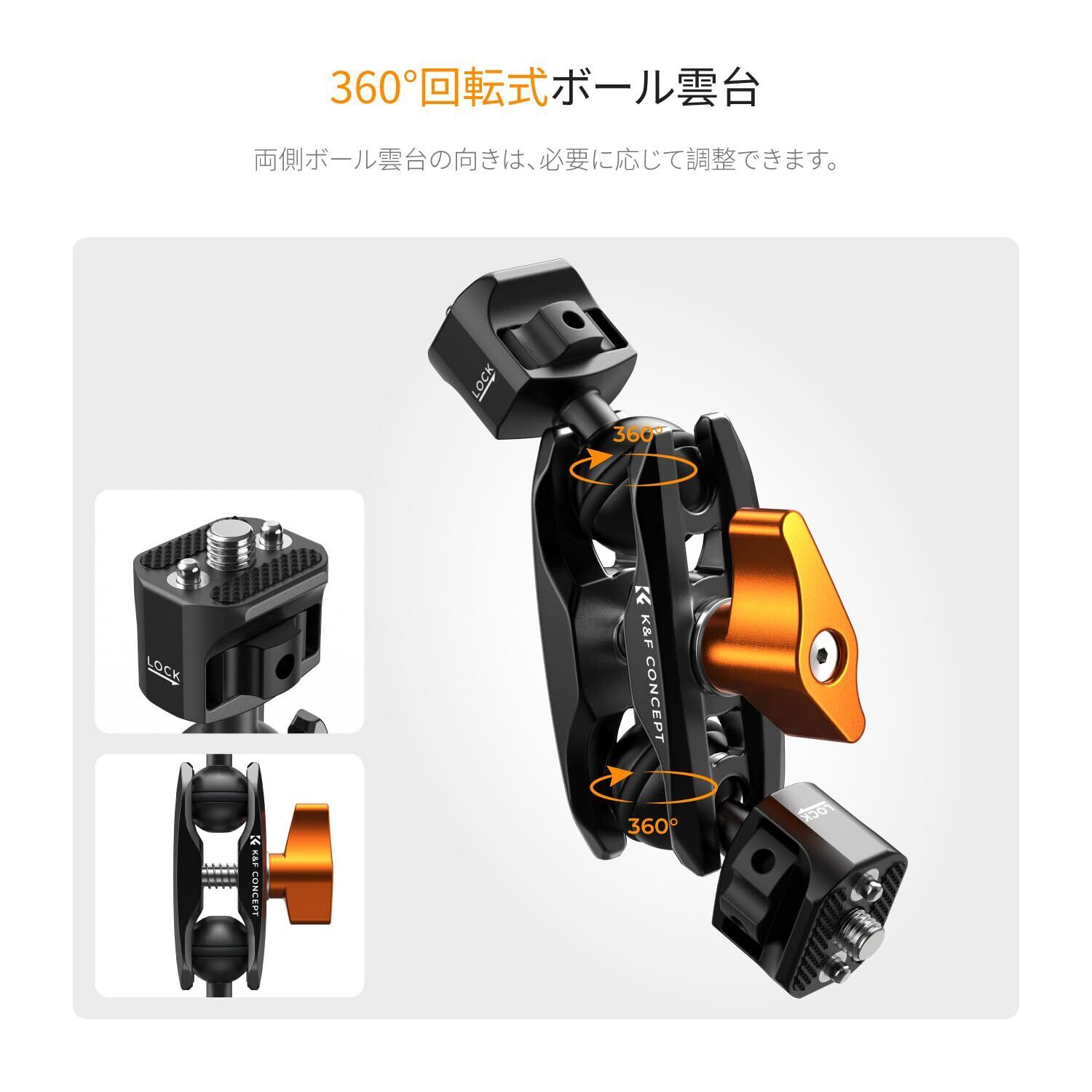 K&F Concept デュアルボールヘッド マジックアーム 1/4"-20ネジ付き多関節マジックアーム 360°回転ボールヘッド アルミニウム合金カメラモニターマウントアーム