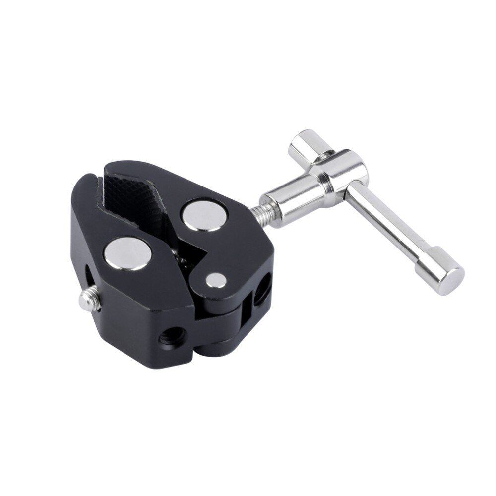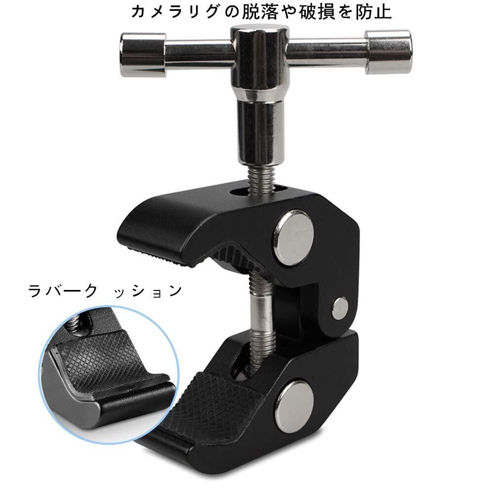 1.スーパークランプは、傘、クロスバー、プレート、棚、フックなどに取り付けることができます。持ち心地の良いゴムを採用し、カメラリグの脱落や破損を防ぎます。