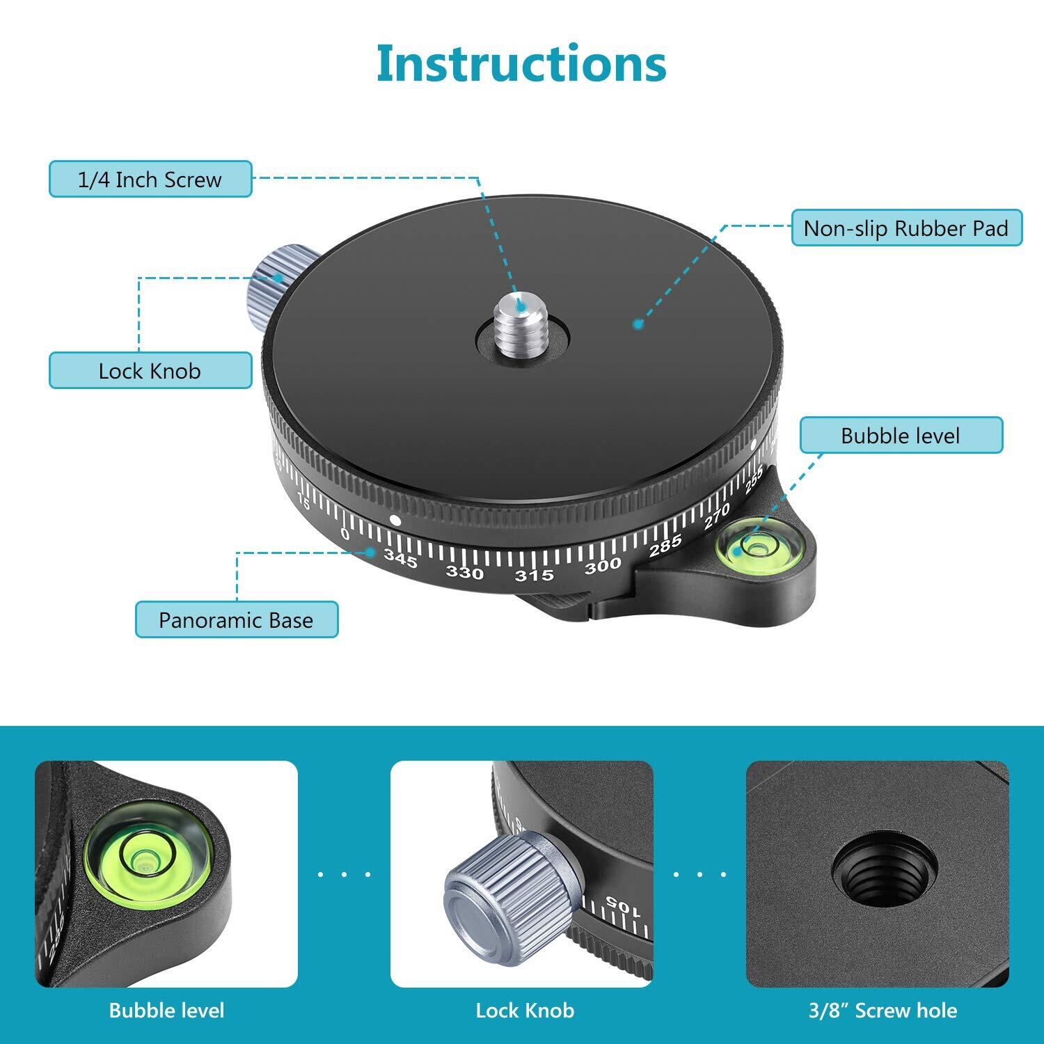 NEEWER カメラパノラマパンベース 3/8"ネジ アルミ合金パノラマボール三脚ヘッド バブルレベル付き 三脚一脚デジタル一眼レフカメラ対応 耐荷重10キロ