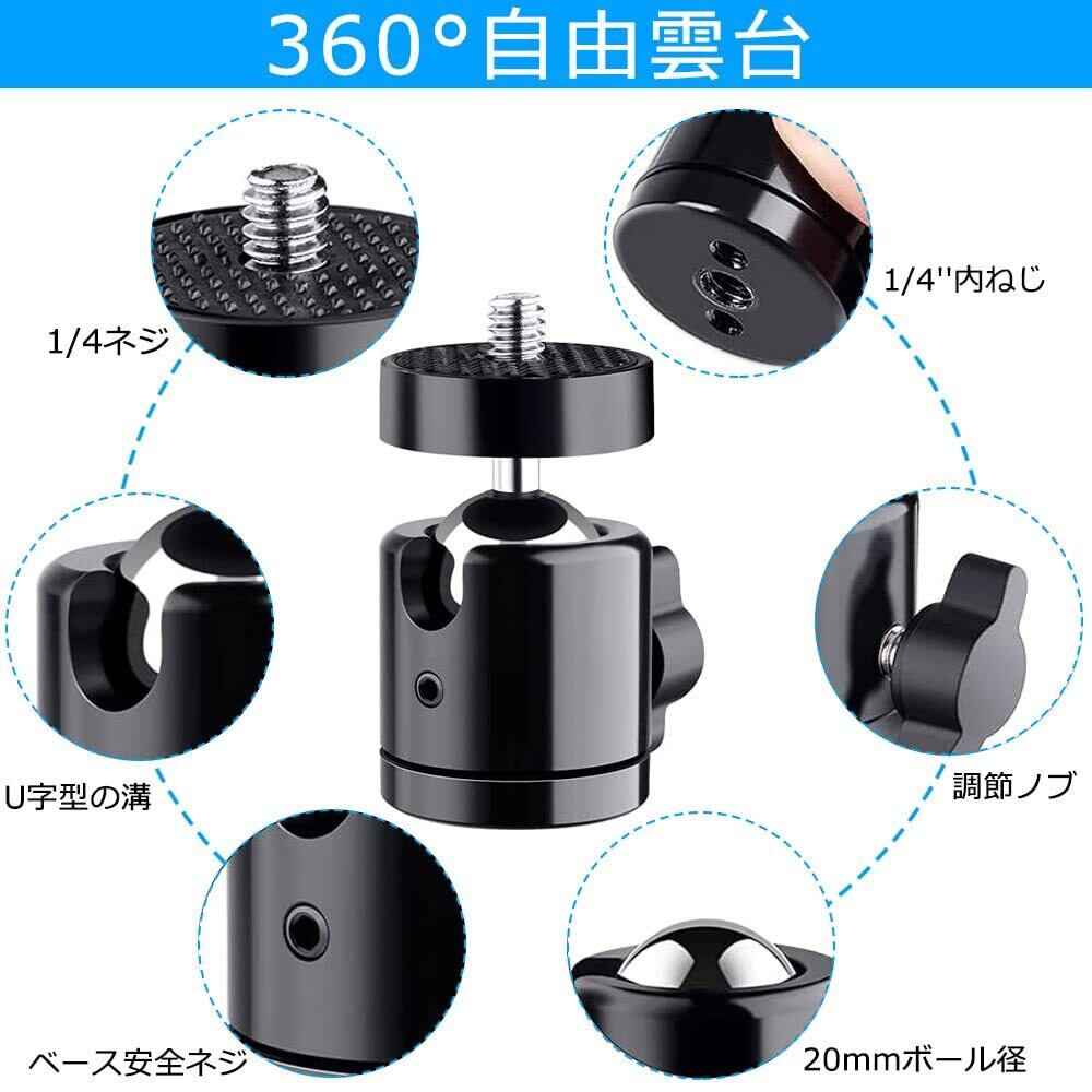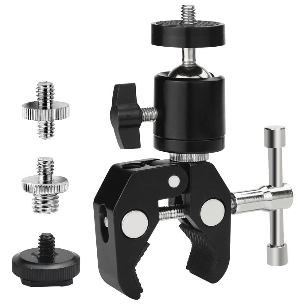 YUENWUZINIC 自由雲台 1/4 3/8ネジ付き ボールベッド雲台 360°回転可能ボール雲台 強化アルミ製 耐荷重2-3kg スーパークランプ ボールヘッドアーム 蟹バサミクランプ 強力 パイプクランプ 多用途クランプマウント カメラ/ビデオ/スマホ/プロジェクター/モニター/撮影用(ブラック)