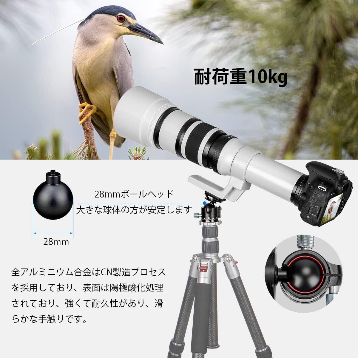 【在庫限り】Koolehaoda 自由雲台 ボール雲台 低重心 360度回転 耐荷重 10kg ボールヘッド直径 28MM CNC アルミ合金 1/4”&3/8”ネジ付き ビデオ カメラ/一眼レフ/三脚/一脚用 (E-1)