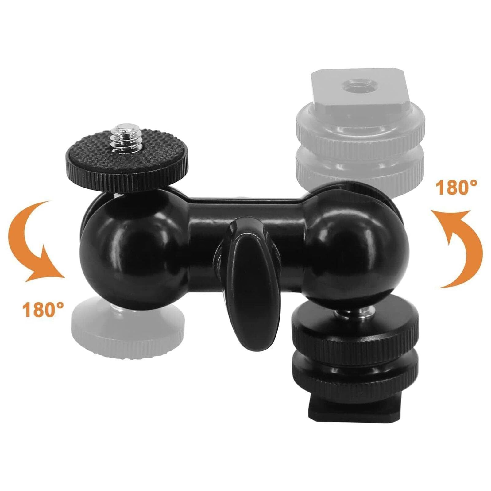 Airika マジックアーム コールドシュー付き ダブルボールヘッド 1/4"ネジ付き コールドシューアーム 延長アーム 180°角度調整可能