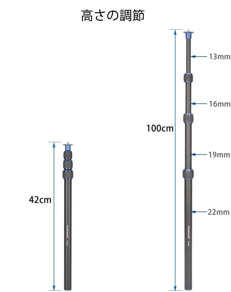 ■【多様な延長機能!】Koolehaodaの三脚延長チューブは、4セクションのデザインで最大100cmまで伸縮可能です。撮影シーンに応じて最適な高さを実現し、あなたのクリエイティブな表現をサポートします。