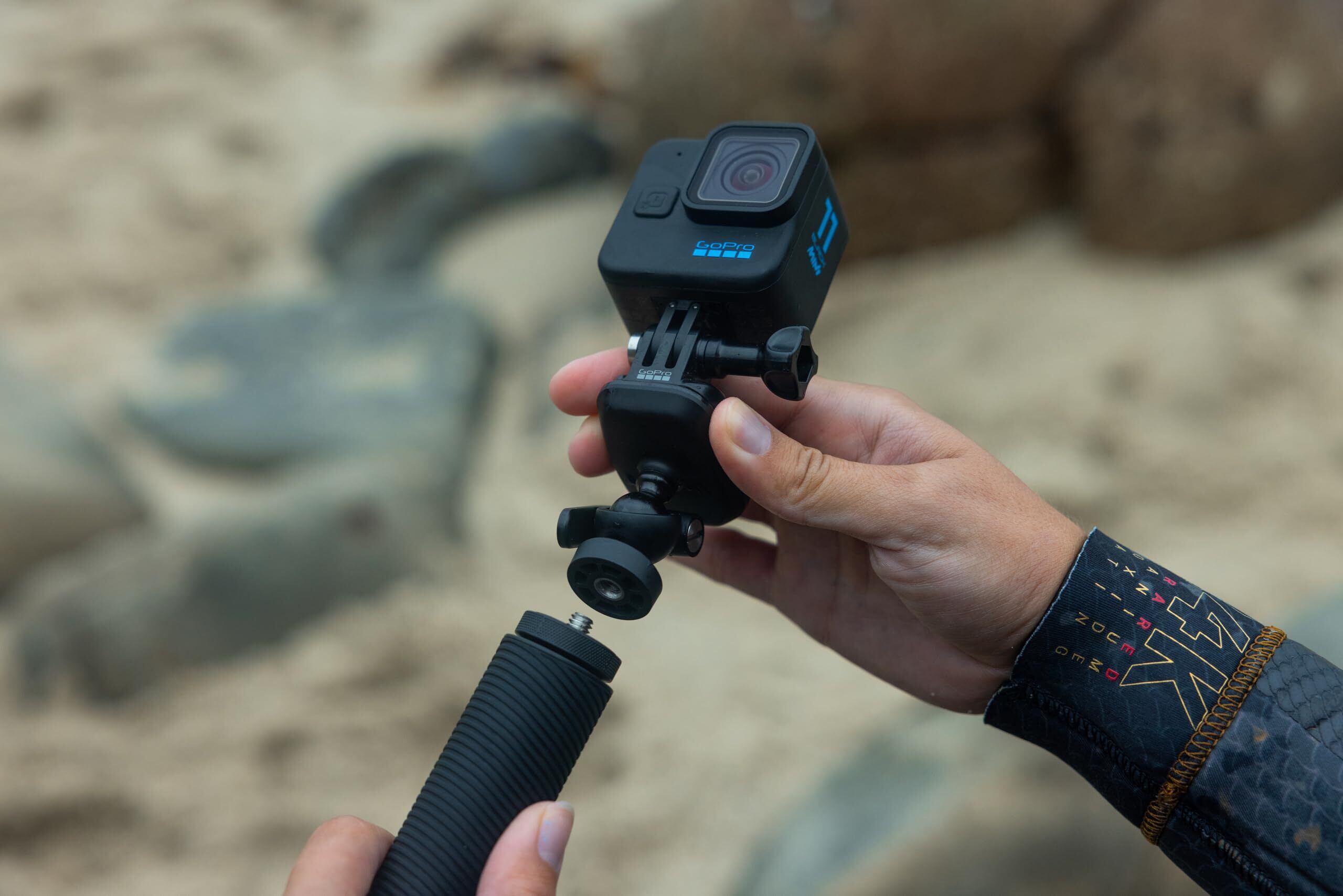 標準的な1/4-20マウントを備える三脚や一脚、自撮り棒などにGoProをしっかり装着できるアダプターセット。指マウント(フィンガーアダプター)と角度調整が自在なボールジョイントアダプターの2種に、サムスクリューを同梱。タイムラプスや定点撮影、Vlogまで安定した画づくりをサポートします。