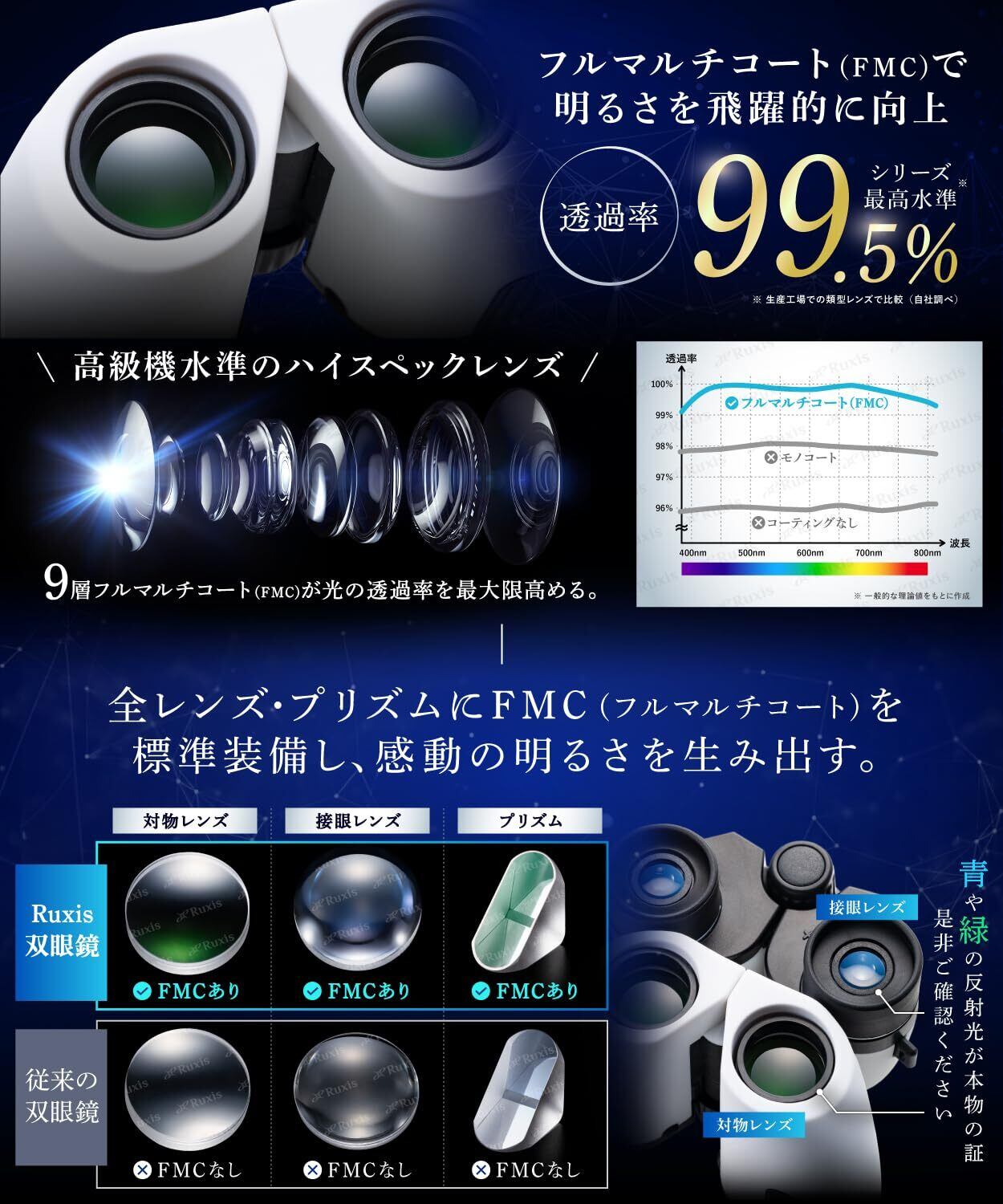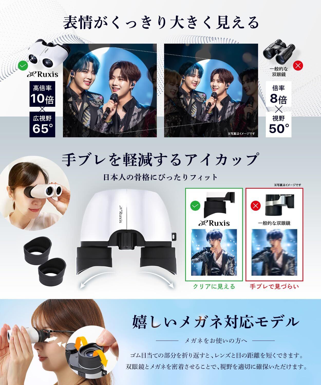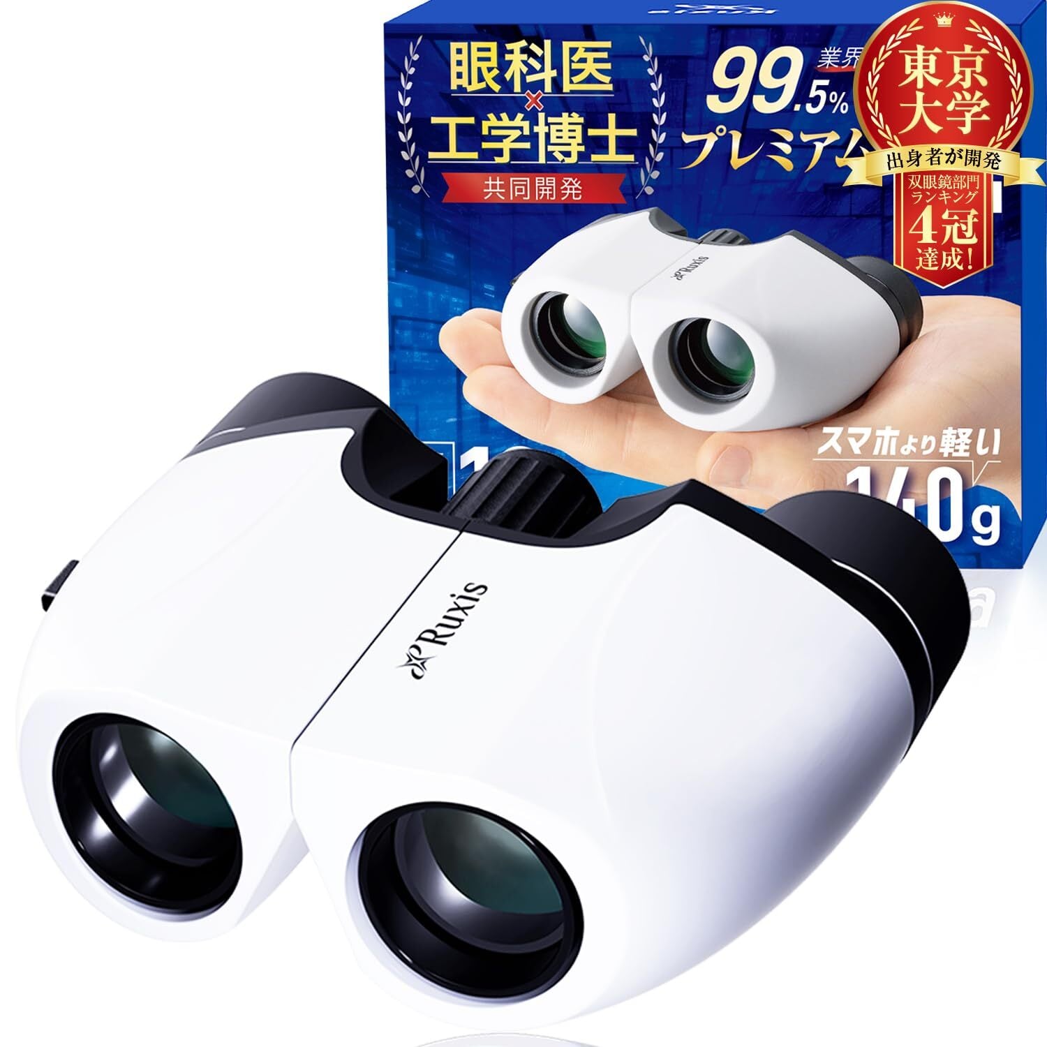 【2025最新】【眼科医x東大卒の工学博士が開発】 双眼鏡 ライブ用 10倍 オペラグラス コンサート用 スポーツ観戦用 超軽量 140g 【日本ブランド】 Ruxis (ホワイト)