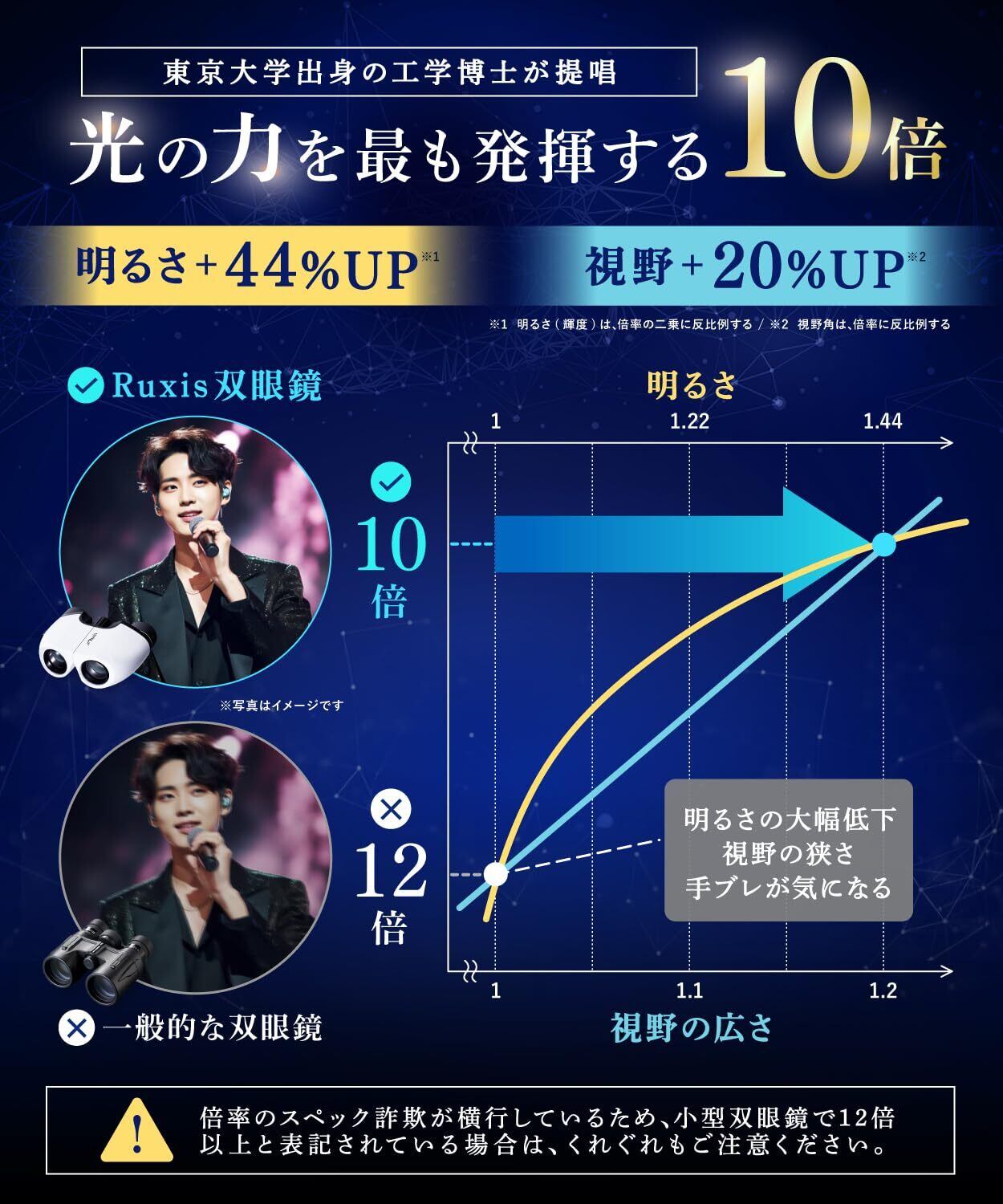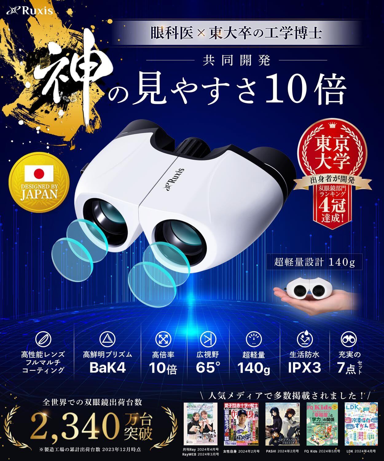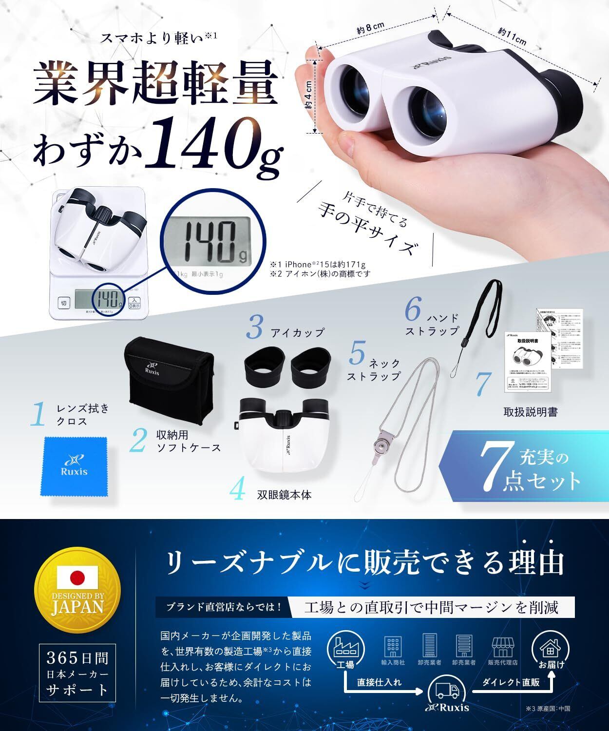 【眼科医x東大卒の工学博士が開発】 双眼鏡 ライブ用 10倍 オペラグラス コンサート用 スポーツ観戦用 超軽量 140g 【日本ブランド】 Ruxis (ホワイト)
