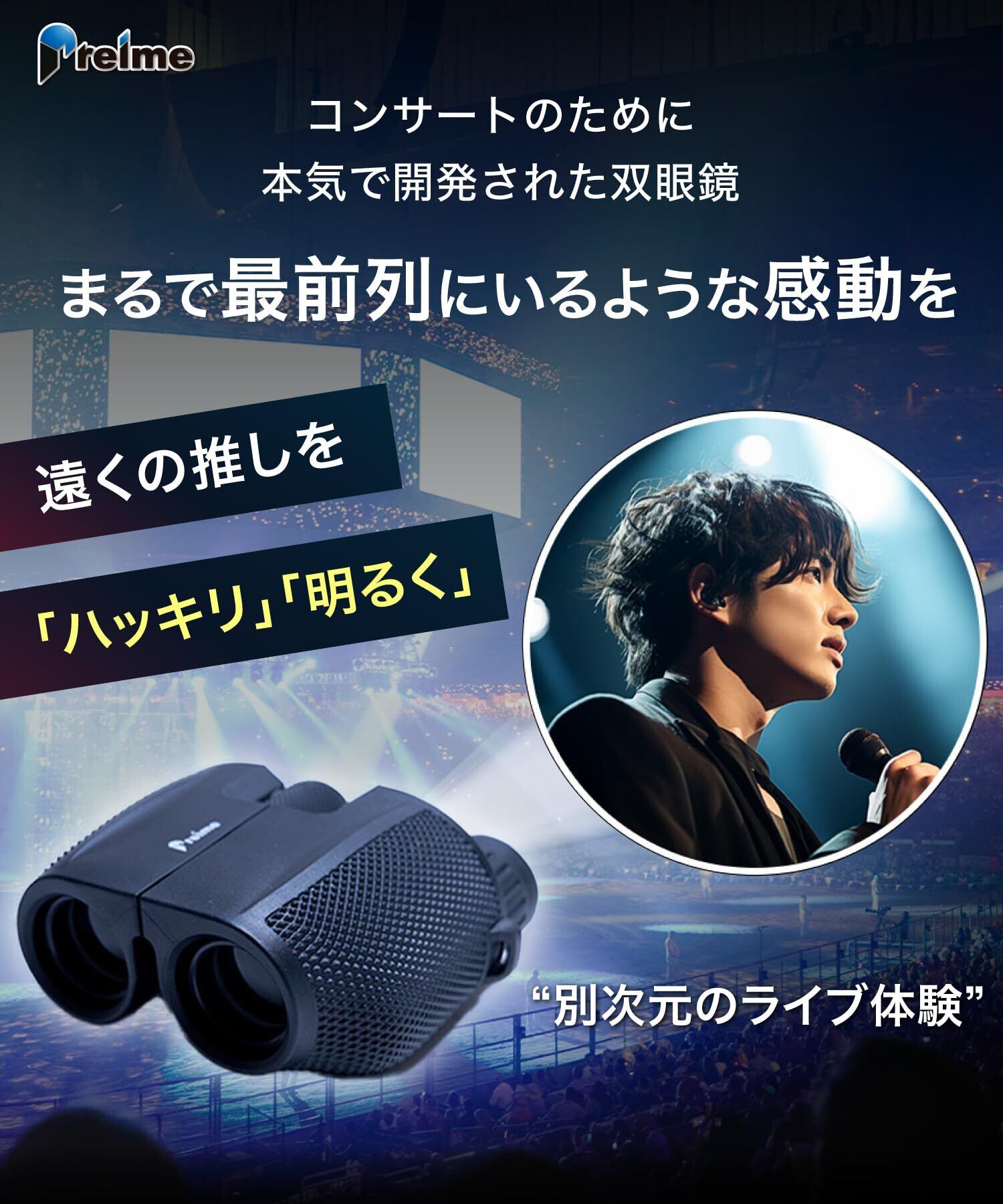 【Preime双眼鏡の特徴】当社のPreime双眼鏡は12倍の倍率で、ほとんどのコンサート会場やドームで最適な性能を発揮します。対物レンズの有効径は25㎜、ひとみ径は2.5で、自然な明るさを提供します。また、多層膜コーティングを採用し、長時間の使用も考慮した260gの軽量設計です。Preime双眼鏡は、お客様のコンサート体験を最大限に豊かにするために精緻に設計されています。