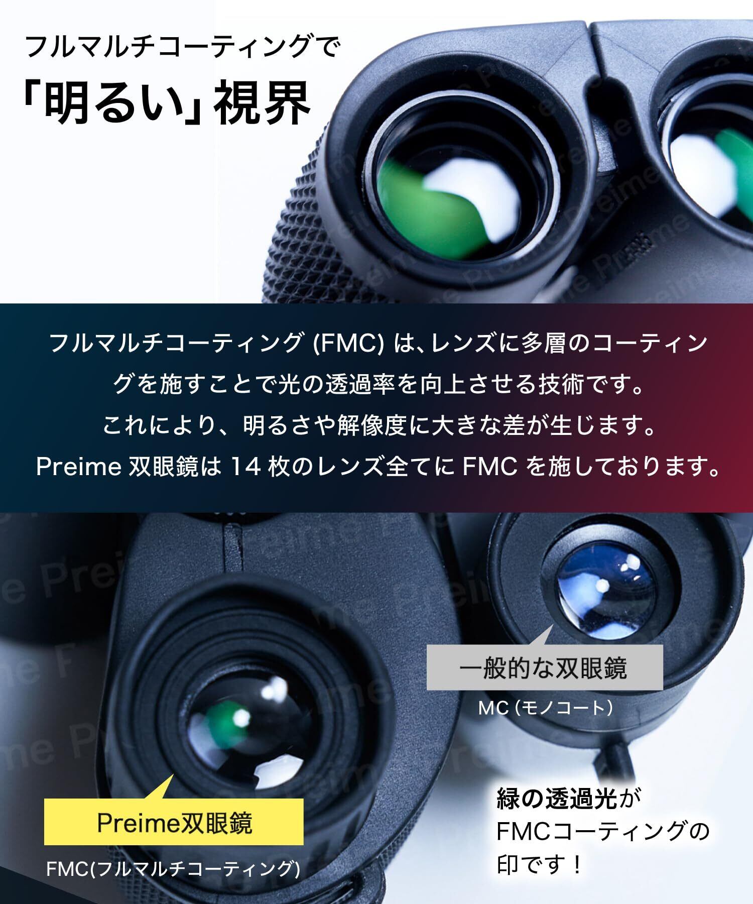 【眼鏡使用時の対応】Preime双眼鏡は、眼鏡をかけたままでも使用できます。ご注意いただきたいのは、商品がお客様の手元に届いた際、目当てに折れ目がついている可能性がございます。その場合は2~3日の放置で元の状態に戻りますのでご安心ください。【スペック】光学ガラス、グラスファイバーボディ、ストラップ付き、アイカップ、非ナイトビジョン。最大限の注意を払って製造しておりますが、レンズ内部にごみが入ってしまったり、ピント調節部分に不具合が見られた場合には、商品交換、または返金をご対応させていただきます。