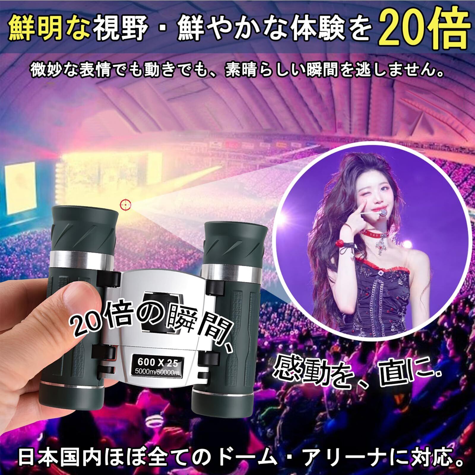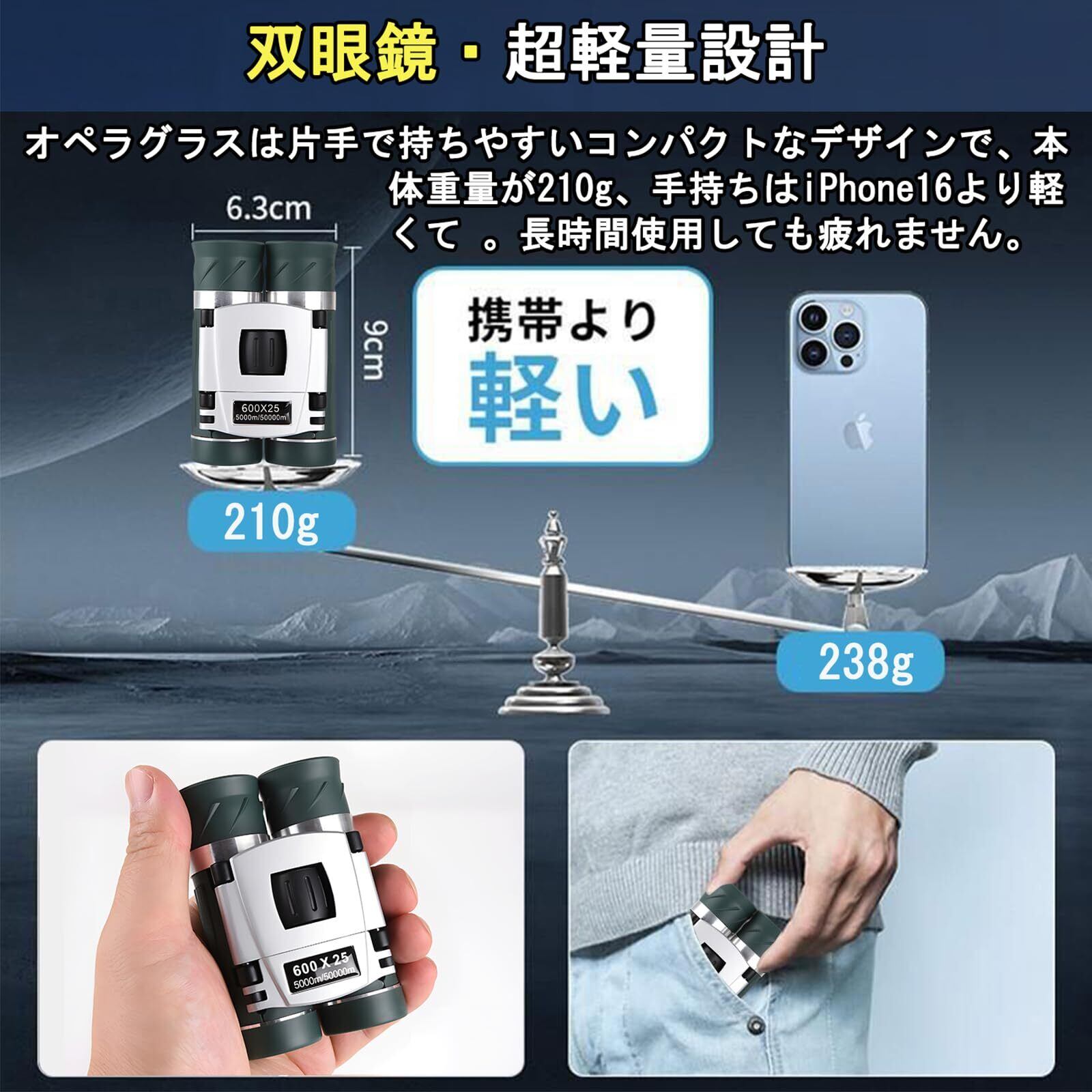 双眼鏡 ライブ用 ドーム&超軽量&コンパクト:オペラグラスは片手で持ちやすいコンパクトなデザインで、本体重量が210g、手持ちはiPhone16より軽くて 。長時間使用しても疲れません。コンパクトでカバンや首掛けて持ち歩いても邪魔になりません。折りたたむとさらにコンパクトになり、バッグに楽々収納できます。お子様や女性に最適。コンサートやスポーツ観戦、ライブ、オペラ、観劇、野鳥観察などに最適です。