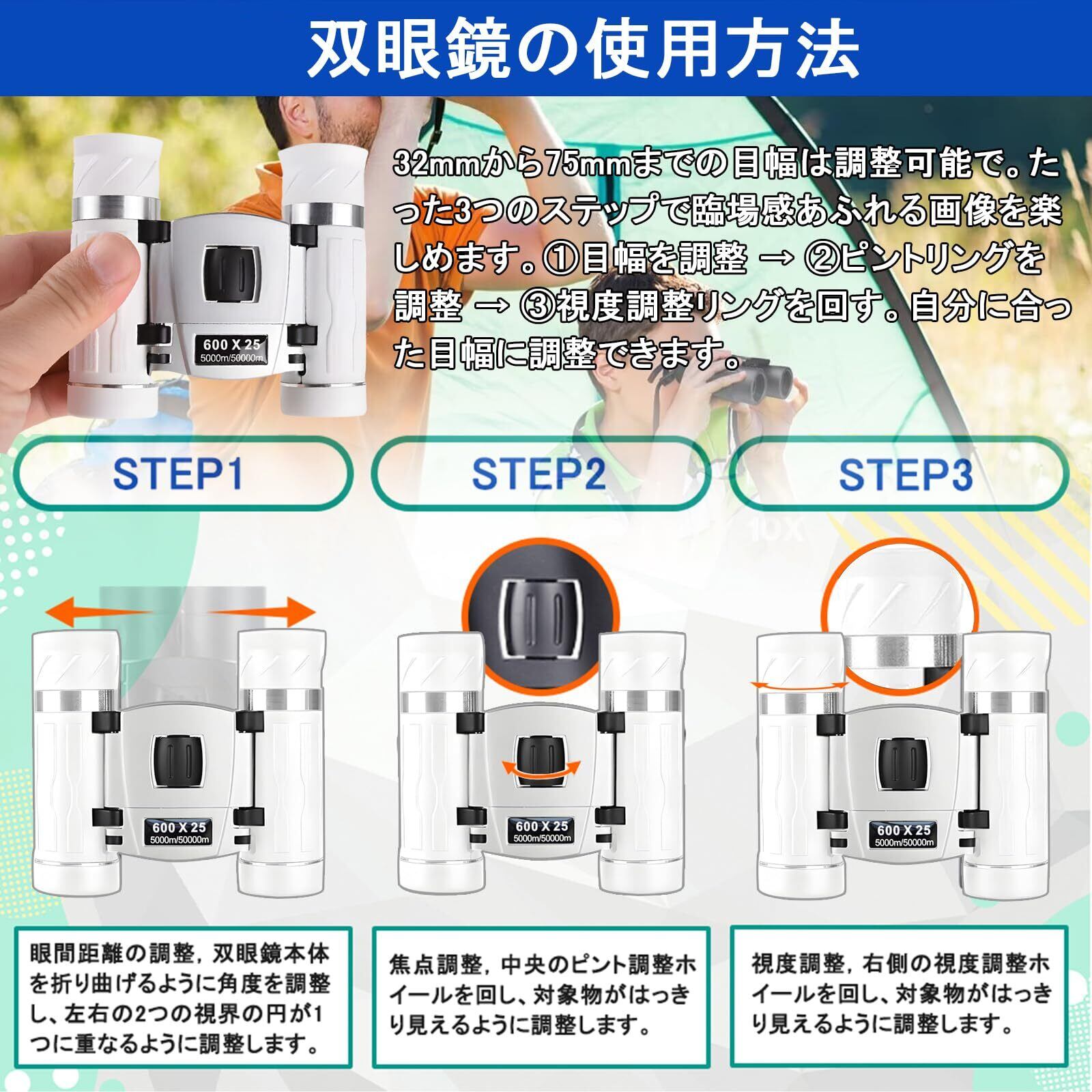 【双眼鏡 スポーツ観戦用・使用方法】32mmから75mmまでの目幅は調整可能で。たった3つのステップで臨場感あふれる画像を楽しめます。①目幅を調整 → ②ピントリングを調整 → ③視度調整リングを回す。自分に合った目幅に調整できます。重専用収納ポーチやレンズクリーニングクロス、日本語取扱説明書が付属しています。首に掛けられるストラップが付属しており、いつでも手に取って使用できます。1年以内に使用中に問題や故障が発生した場合は、にご連絡ください。のアフターセールスチームは24時間オンラインでお客様へのサービスに専念しています。