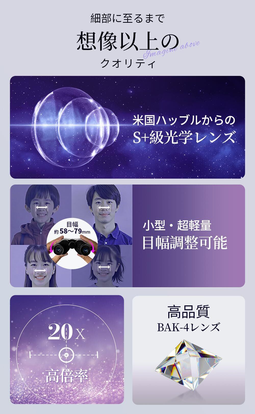 ■【迫力の20倍ズームで特別な瞬間を楽しもう!】この双眼鏡は最新のBAK4光学レンズを採用しており、20倍のズーム機能によって遠くの対象を驚くほどクリアに映し出します。コンサートやスポーツ観戦でも、その迫力をしっかりと体感できます!