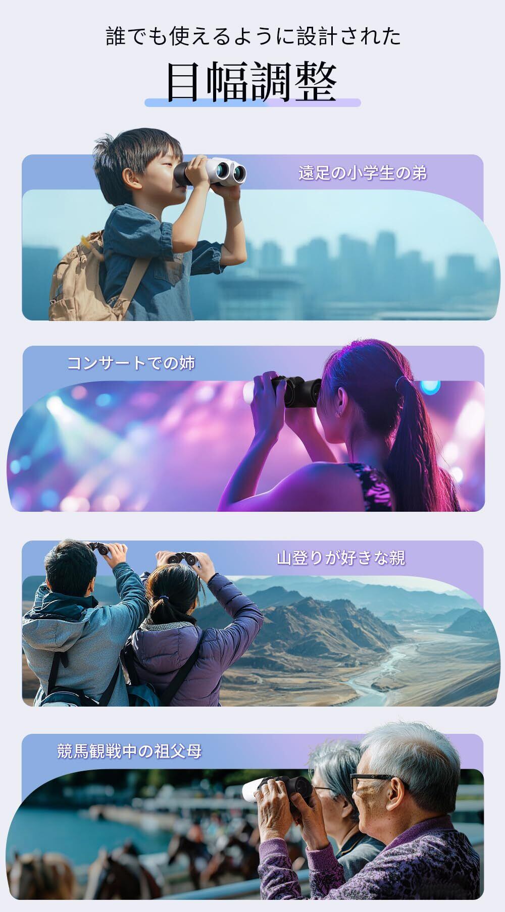 ■【様々なシーンでの使用に最適!】倍率調整機能が付いているため、お好みに合わせて簡単に設定可能。ライブ、オペラ、野鳥観察、ハイキングなど、多彩な場面で活用でき、家族や友人との思い出作りに最適です。