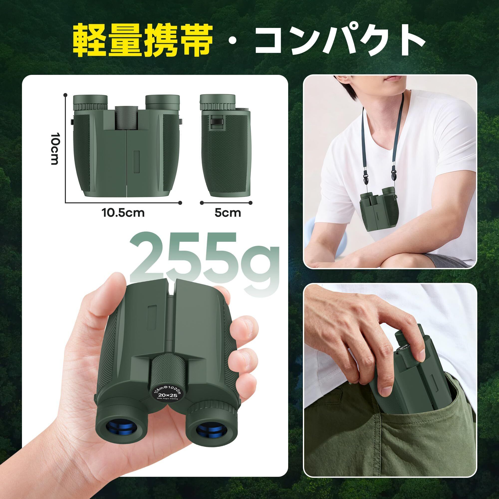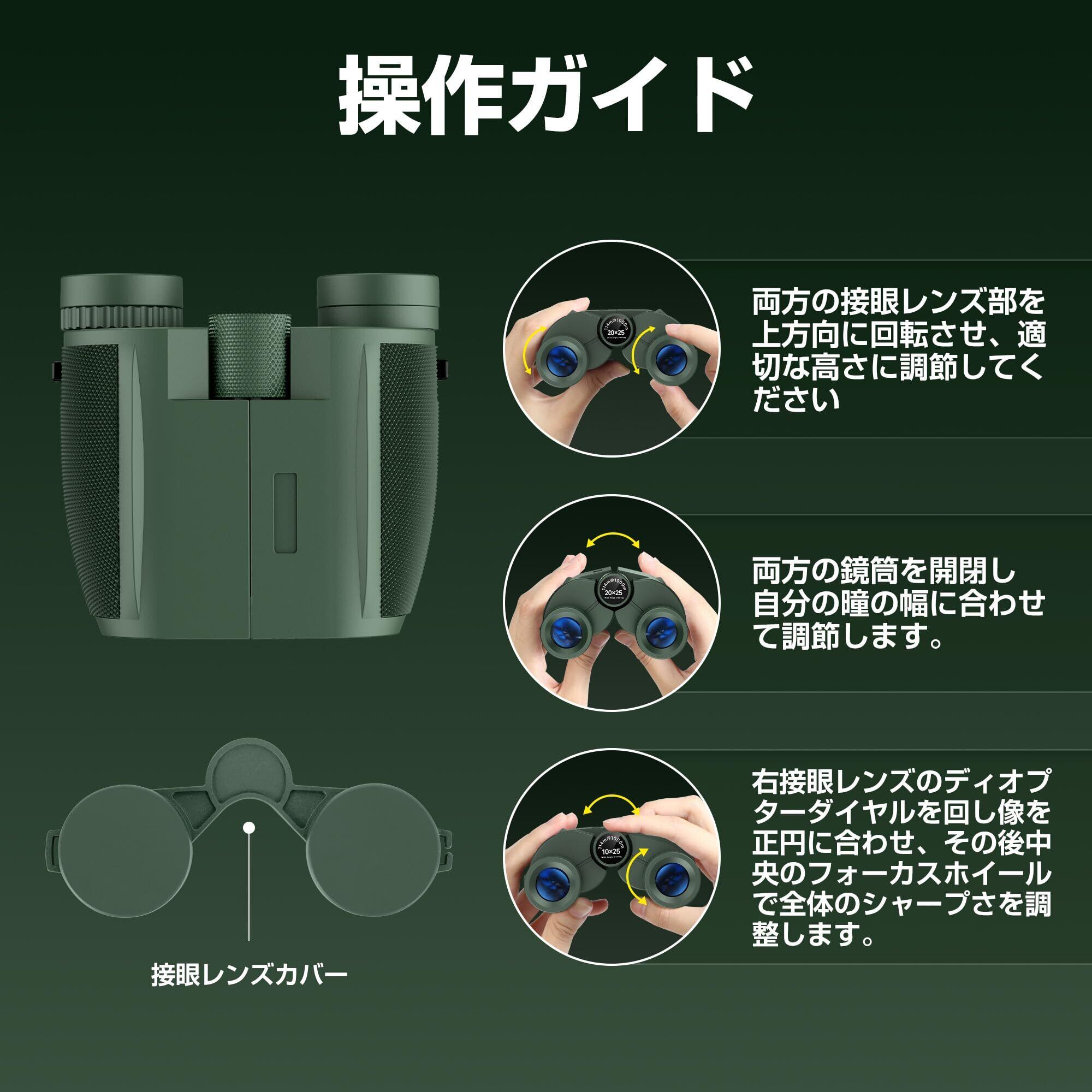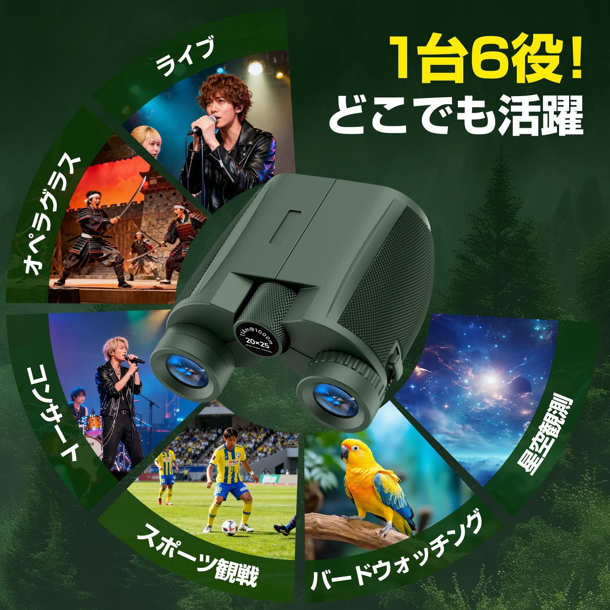 【2025最新】双眼鏡 ライブ用 オペラグラス 20倍 BAK4プリズム&革命的FMC多層コーティング 手ブレ補正 軽量 コンパクト 防水防塵 近視対応 ドーム/コンサート/ライブ/スポーツ観戦用/バードウォッチング 日本語取扱説明書 (グリーン)