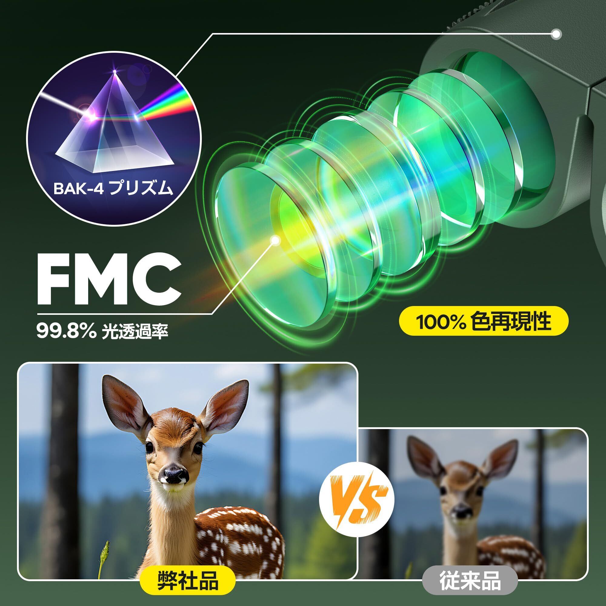 【業界先端光学性能】BAK4プリズム&FMC多層コーティング採用の2025年最新モデルは、驚異的な99.8%の光透過率を実現。従来のBK7プリズムと比較して反射・散乱光を大幅に抑制し、光損失を最小化。コントラスト比150%向上により、薄暗いライブ会場や夕暮れ時のバードウォッチングでも、自然で鮮明な色彩再現が可能です。プロ仕様の光学設計が高精細画質と優れた視認性を両立し、長時間ご使用でも目に優しい設計となっています。