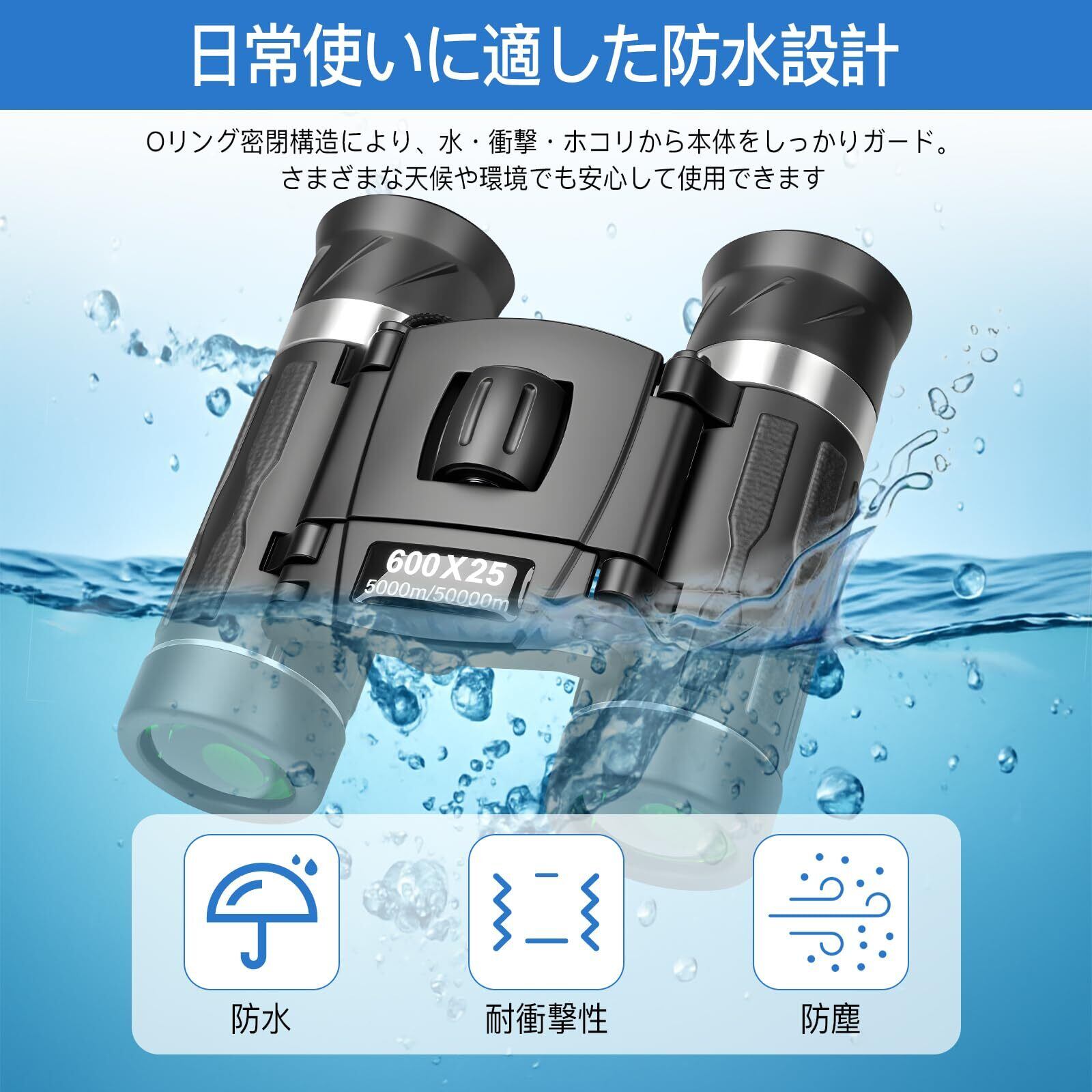 ■【生活防水で安心して使用可能!】屋外のイベントや、雨天時でも安心して使用できる生活防水仕様。どんな天候でも思いっきり楽しめる設計ですので、野外での観察にもピッタリです。