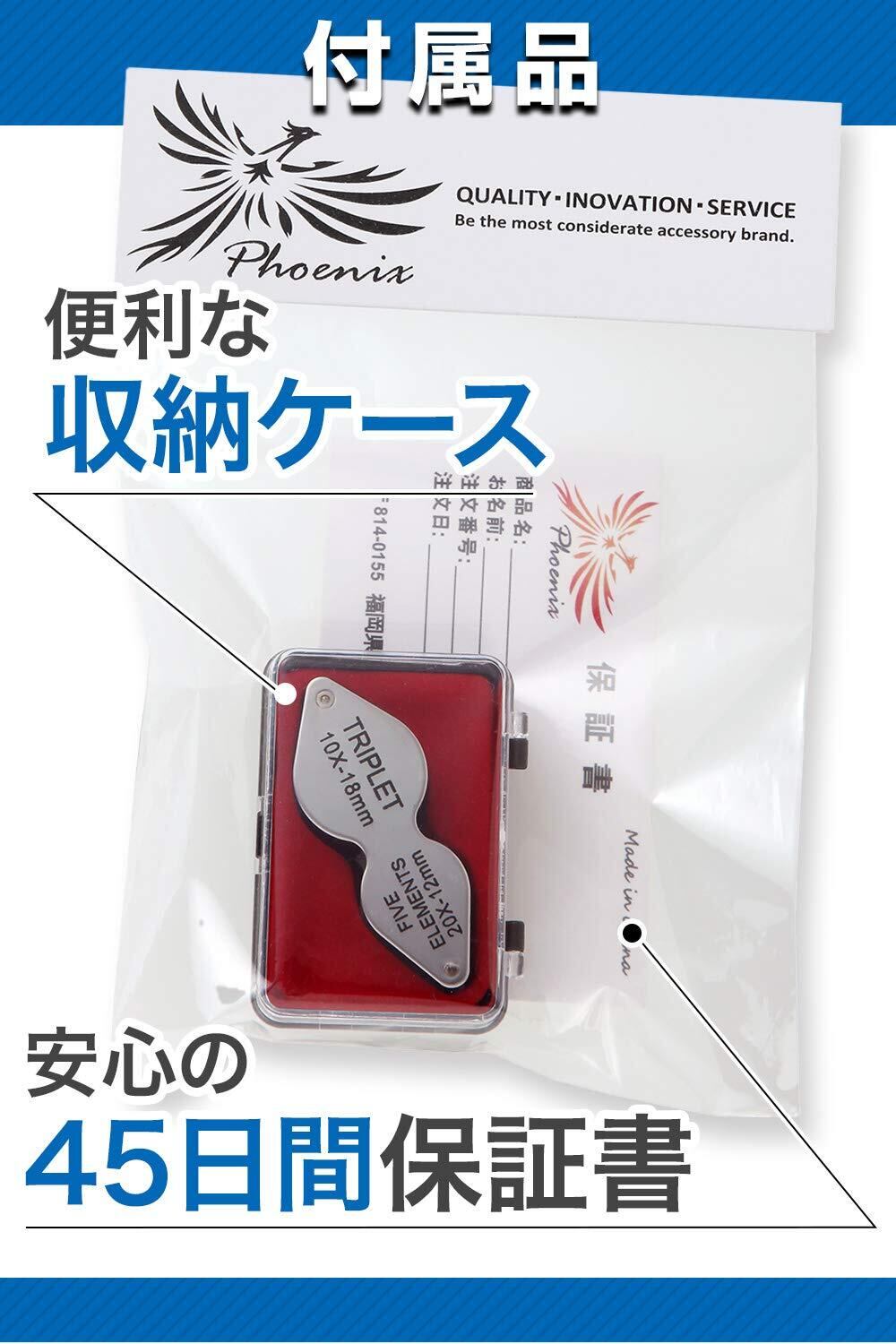 ■【充実のカスタマーサポート!】製品に関するご質問やトラブルがございましたら、迅速に対応できるカスタマーサポートをご用意。安心してお使いいただける体制を整えています。この機会に、Phoenixの携帯用ルーペで新たな観察体験をお楽しみください!