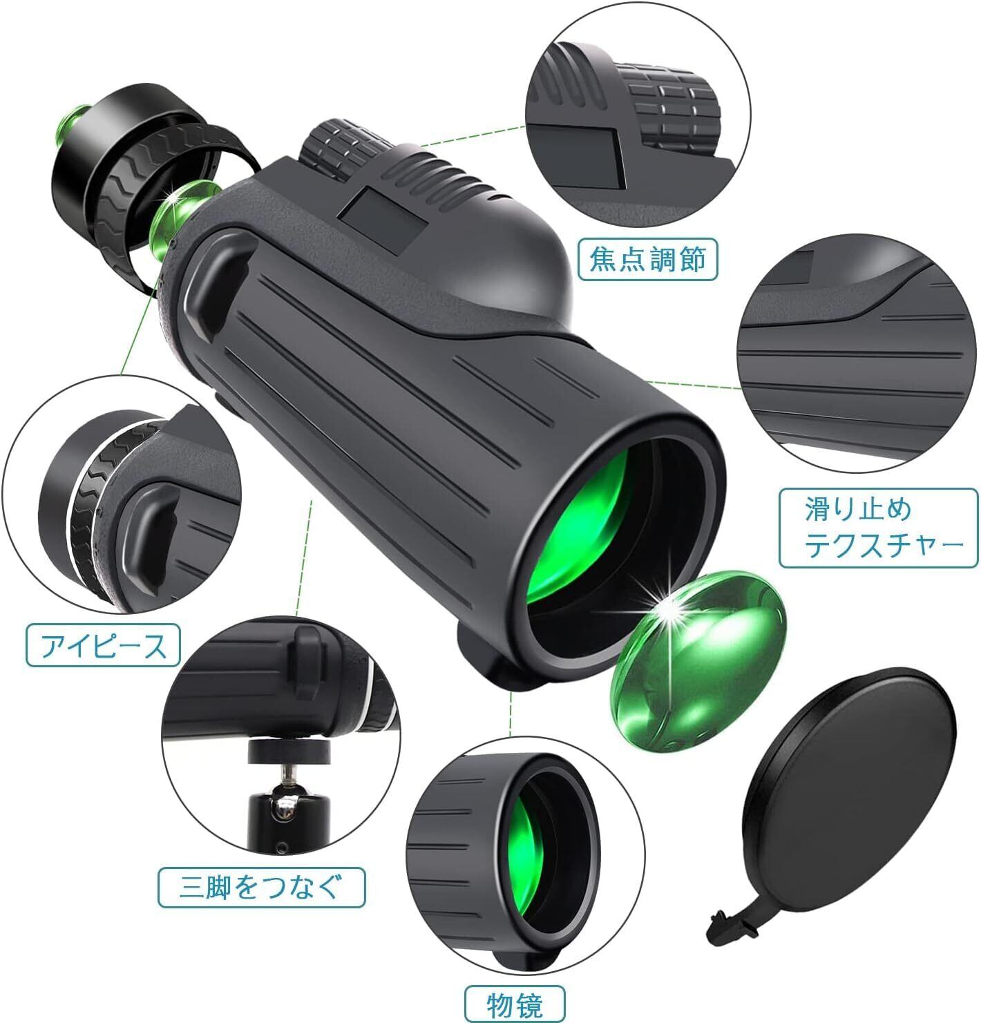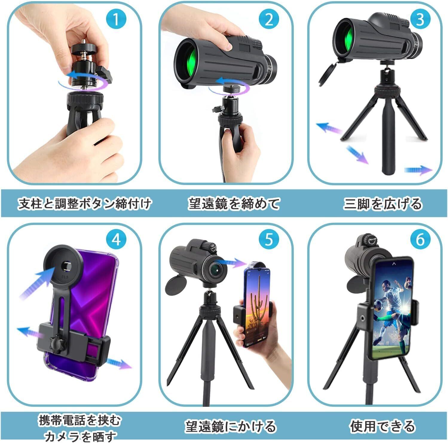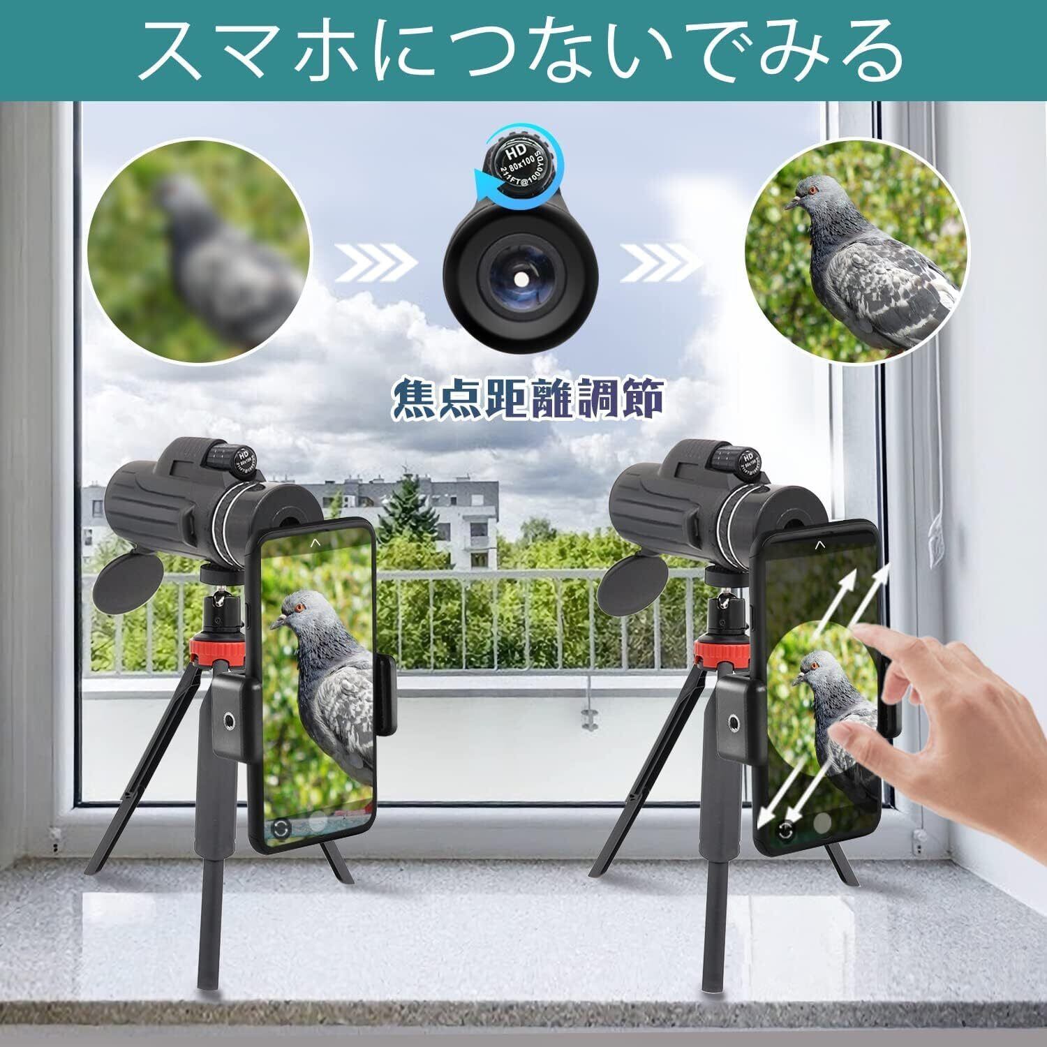 【80x100 単眼鏡】スマホ望遠レンズ iPhone 高倍率 望遠鏡 スマホレンズ 小型 単眼望遠鏡 片手操作 簡単装着 品質な視界 写真撮る 単眼きょう ぼうえんきょう 高級Bak4プリズム 高透過率 iPhone 広角レンズ 携帯かめらレンズ 手ぶれ防止用【伸缩三脚&スマホホルダー&携帯袋&日本語説明書】耐久性高い バードウォッチング/野球観戦/運動会/子供プレゼント