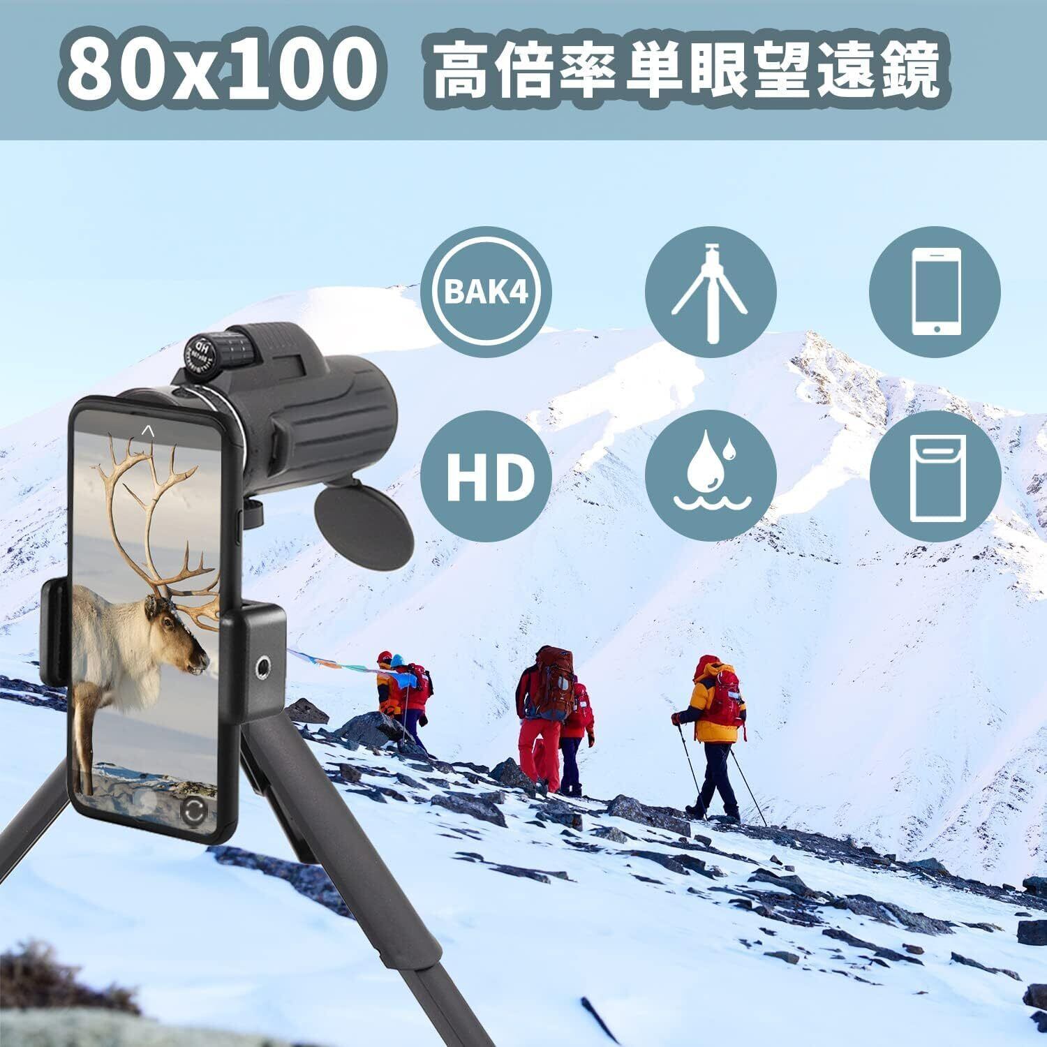 ■【高倍率の視界で壮大な景色を捉える!】この単眼鏡は、80x100の高倍率を誇り、遠くの景色を鮮明に見ることができます。バードウォッチングやスポーツ観戦など、多様なシーンで活躍し、観察体験を一層豊かにします。