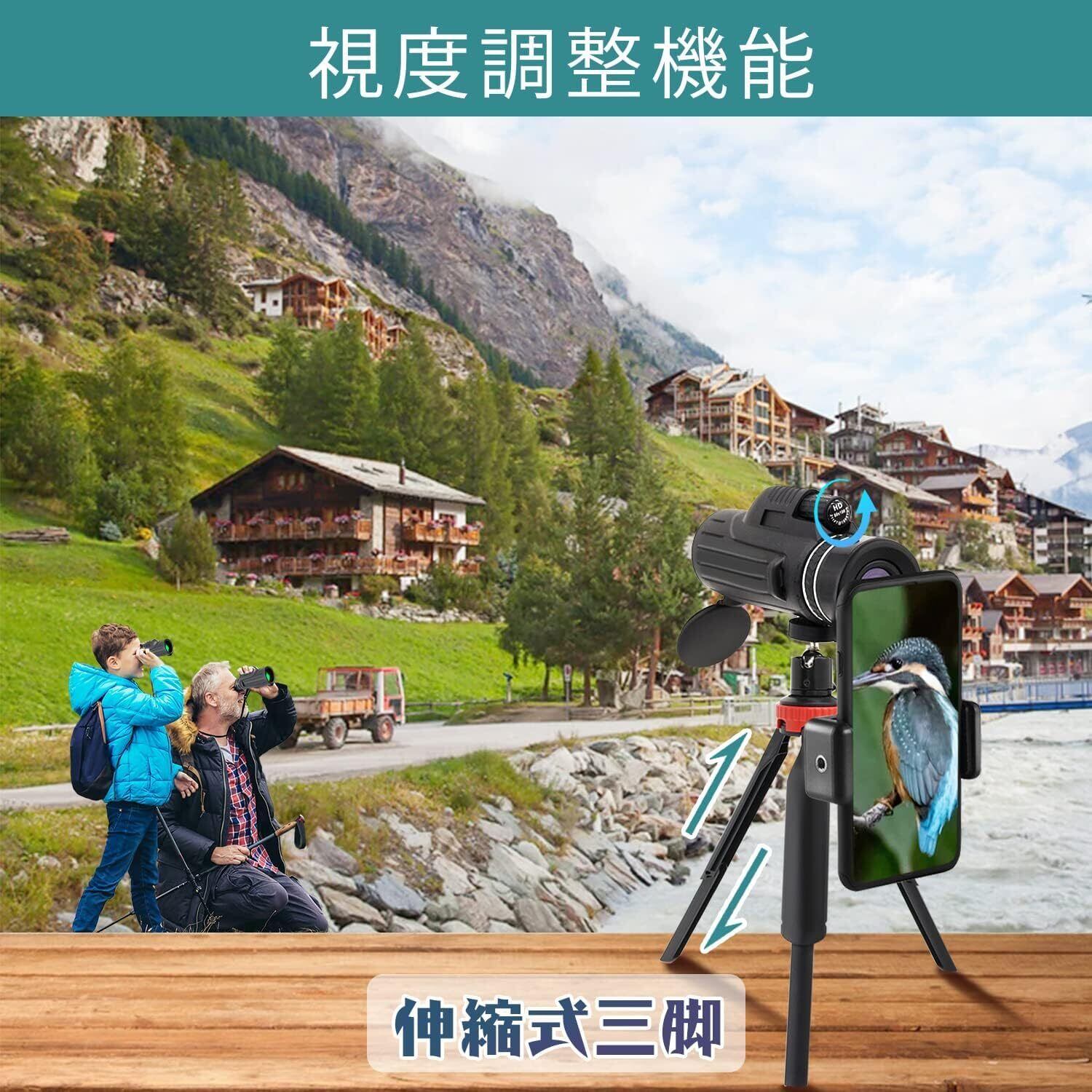 ■【スマホで簡単撮影!】スマホを使って気軽に写真を撮影できるのが魅力。付属のスマホホルダーを使えば、単眼鏡で見た美しい風景をそのままキャッチし、思い出を残せます。特別な瞬間をシェアしましょう!