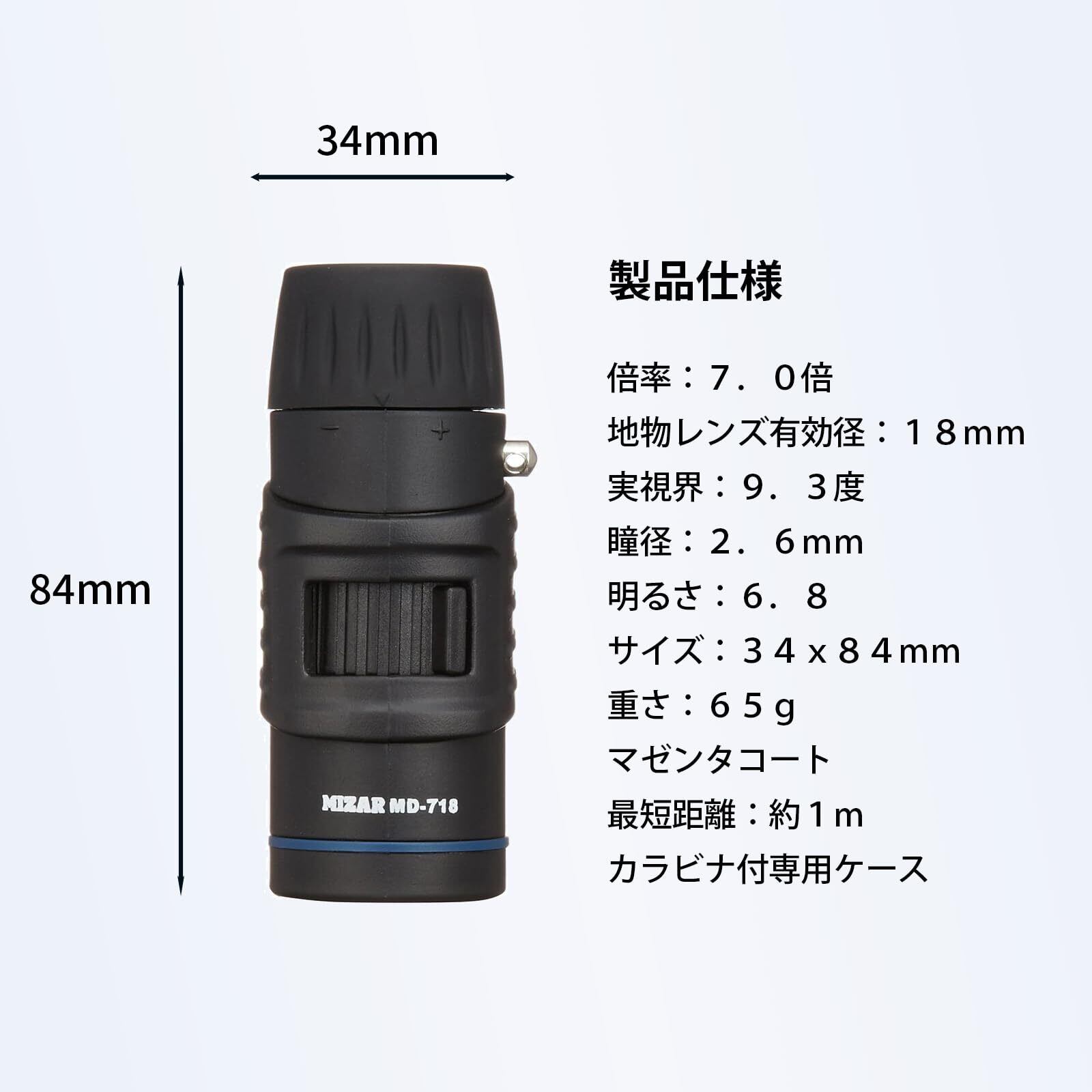 【2025最新】MIZAR-TEC(ミザールテック) 単眼鏡 望遠鏡 7倍18口径 小型タイプ ケース付き 美術館 ブラック MD-718