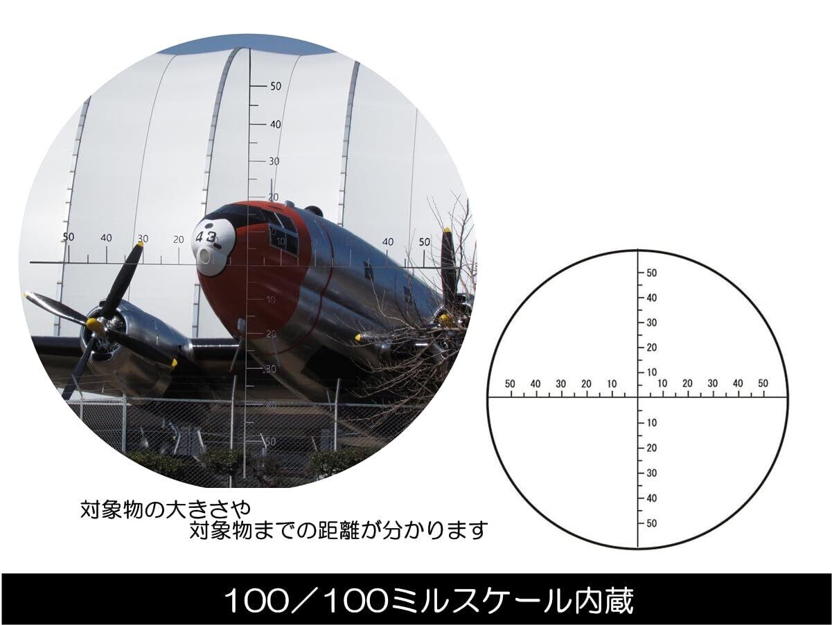 ■【精密な距離計機能!】100/100レティクルを搭載しており、距離を瞬時に測定できます。狩猟や射撃の際にも役立つ便利な機能で、幅広いシーンで活躍すること間違いなしです。