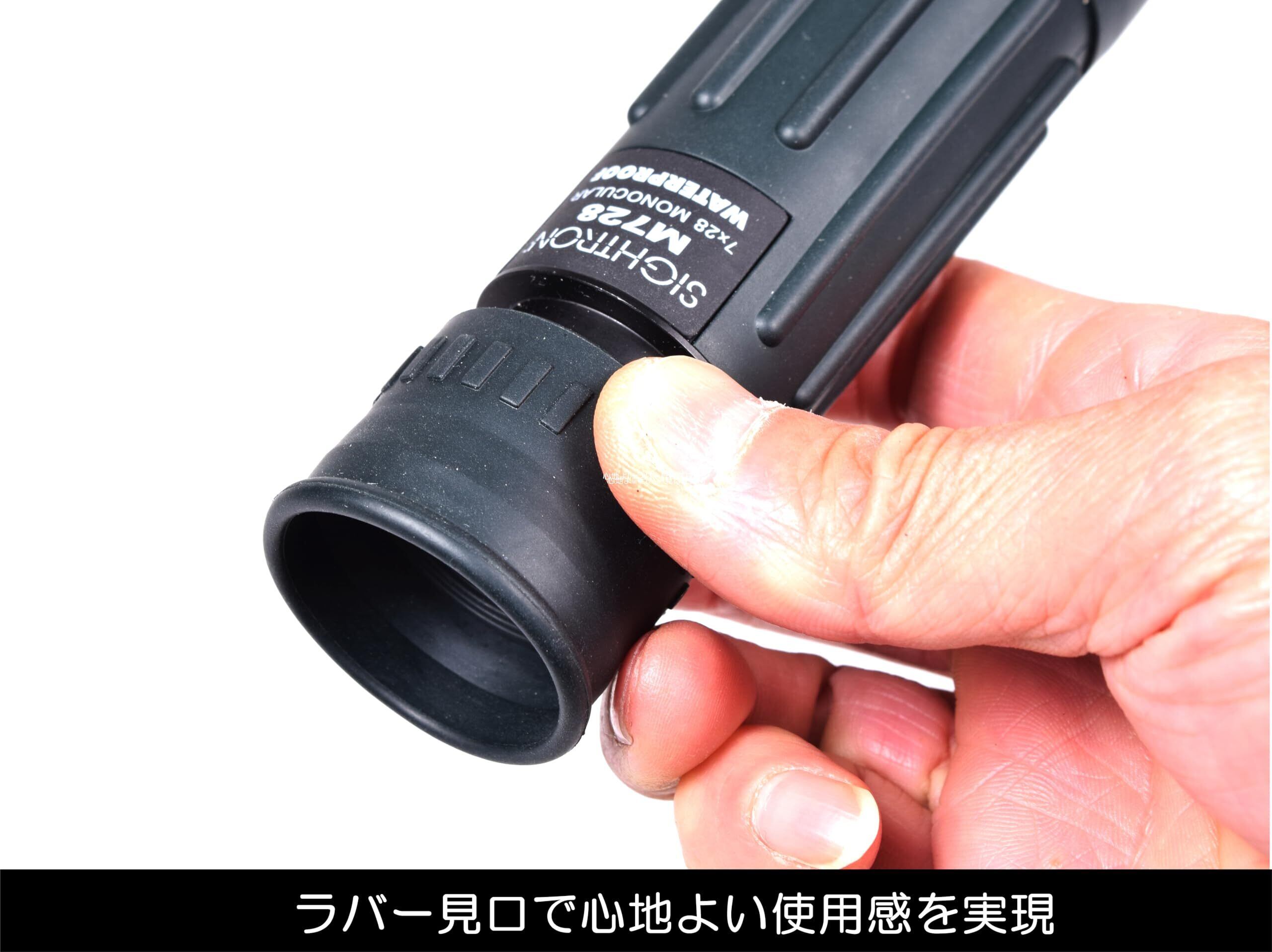 倍率7倍、対物有効径28mm。携帯軍用双眼鏡として高い評価を得ているTAC-36Mをさらに携帯性を高めるために片側だけとした単眼鏡。