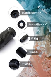 【安心サポート】セット内容:単眼鏡本体x1、ソフトケースx1、ストラップx1、レンズ拭き用クロスx1、レンズキャップx2,日本語取扱説明書x1。お客様の問題を積極的に解決する。万が一の不良品ががある場合は、返品、返金をうして、いつでもご連絡ください。満足するまで問題に積極的に対処します。