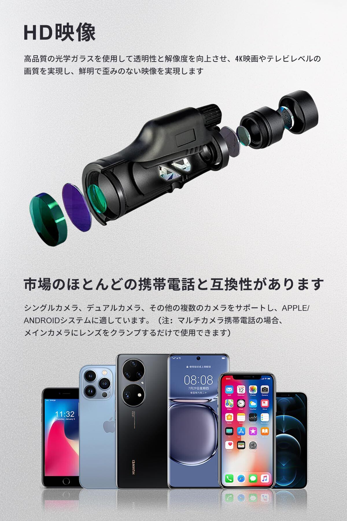 【FMC多層グリーンフィルム】SGEBD単眼望遠鏡セットは全光学FMC多層グリーンフィルムで作られています。スマートフォン望遠鏡のFMC多層緑色ペイントは透明で明るく、光透過率99.5%、高精細、真の色復元を備えています。 旅行、登山、野鳥、コンサート、風景、スポーツ観戦、アウトドア、月、飛行機、星空、風景、野球、サッカー、狩猟、セーリングなどに最適です。