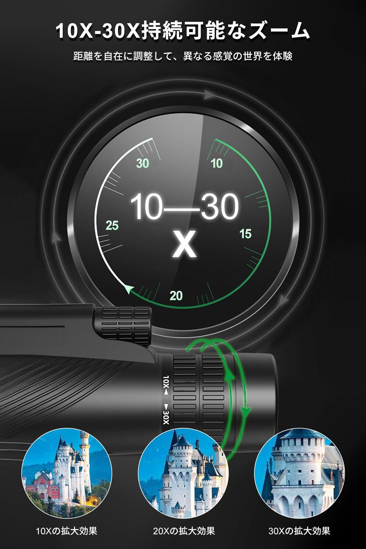 ■【調整可能な10倍から30倍の高倍率で、広がる観察体験!】SGEBDの単眼鏡は、12x50の強力な倍率を持ち、遠くの景色やイベントを鮮明に観察できます。野球観戦やライブ、旅行など、さまざまなシーンで使える高性能の一品です!