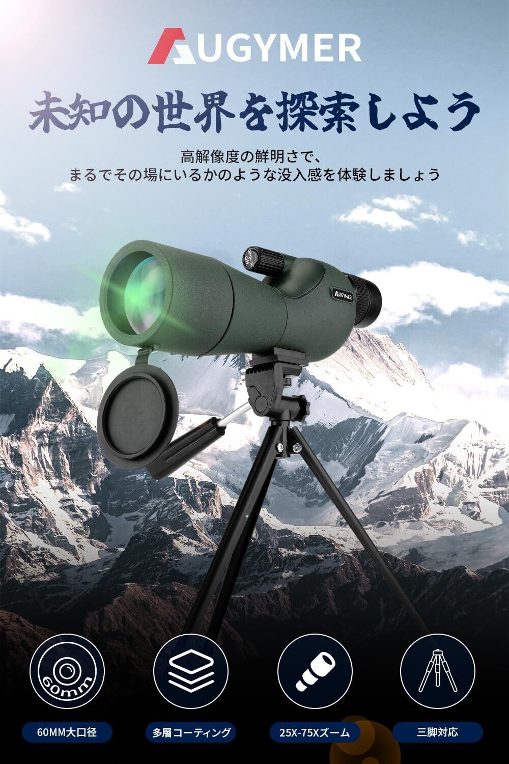 AUGYMER 単眼鏡 望遠鏡 25-75×60mm - 高倍率 望遠レンズ バードウォッチング 望遠鏡 FMCレンズ 軽量 防水 耐衝撃 スマートフォン対応 伸缩三脚付き コンサート 花火大会 登山 野鳥観察 アーチェリー 撮影 録画