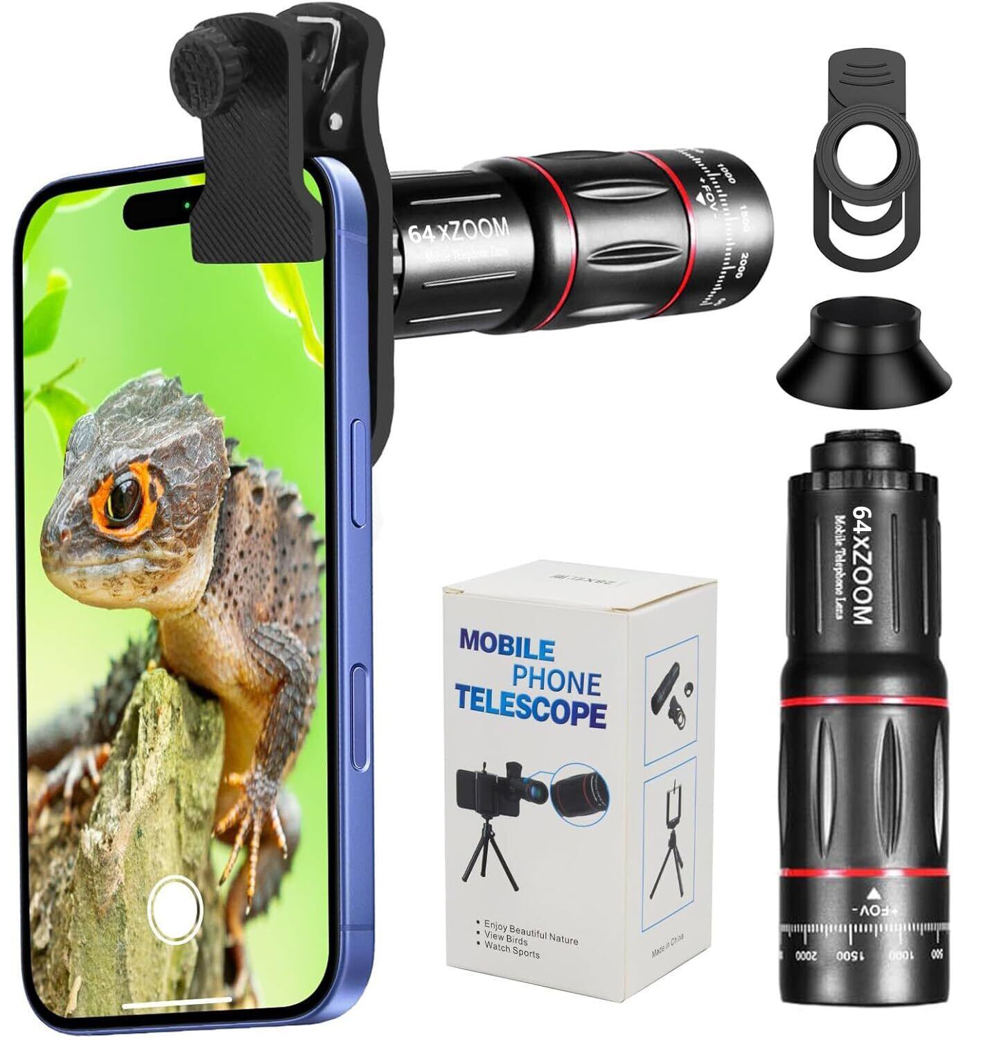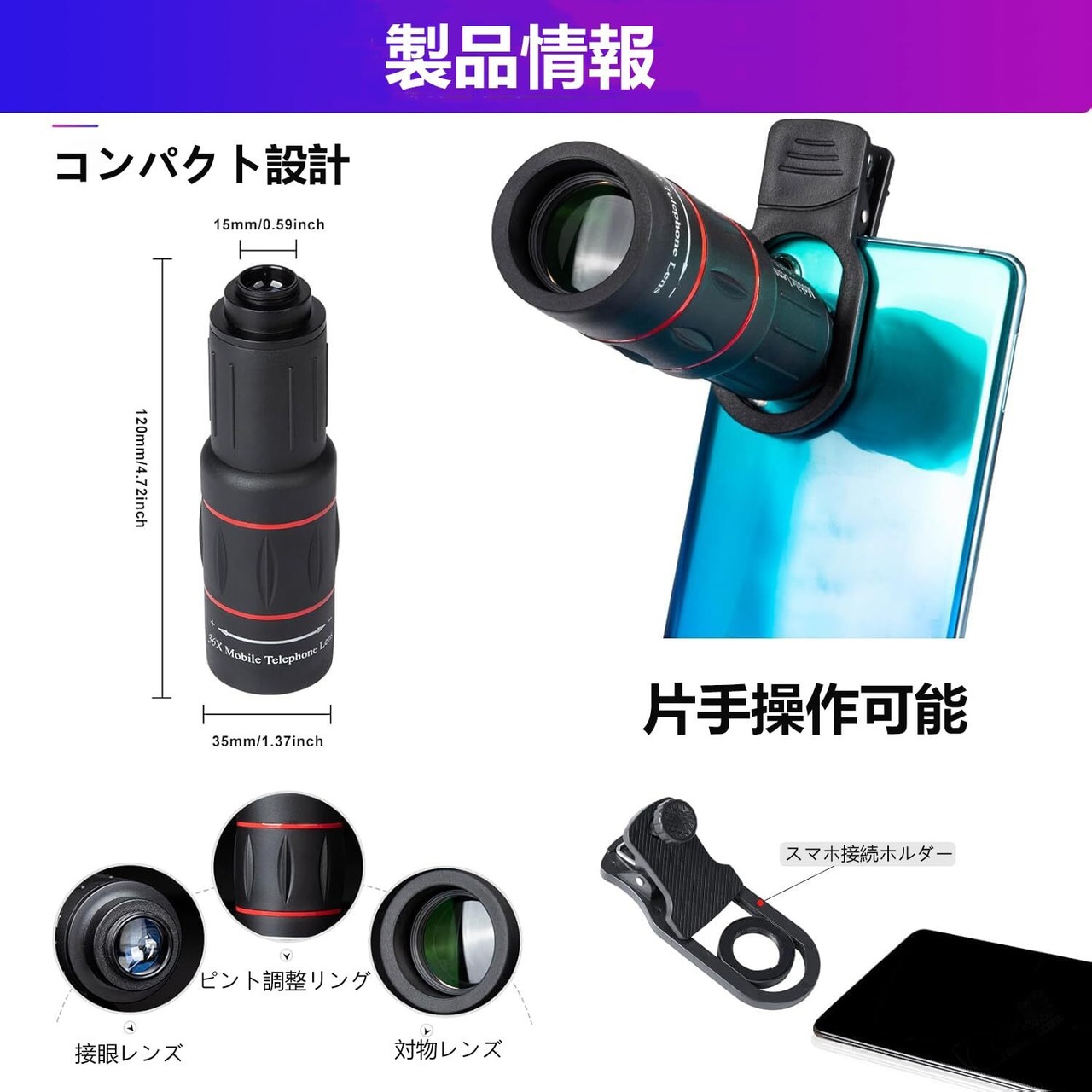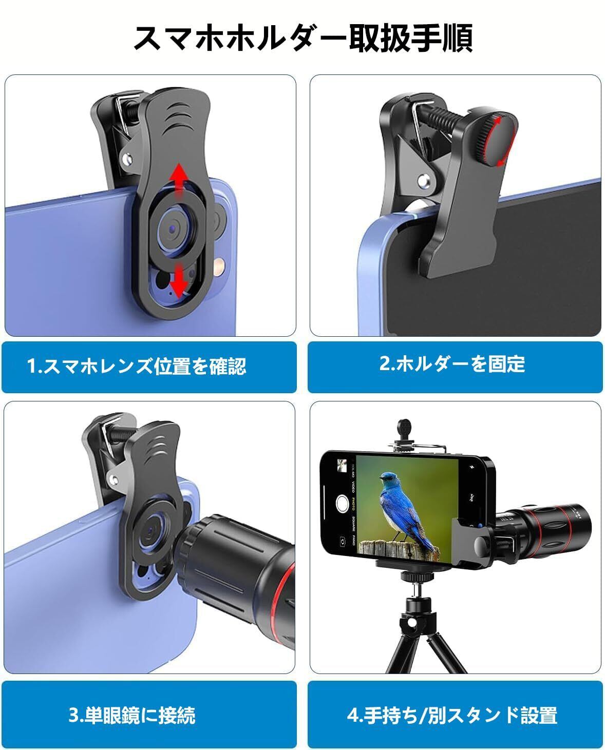 単眼鏡 望遠鏡 スマホ望遠鏡 64x25 レンズ 望遠鏡 高倍率20倍 単眼望遠鏡 小型 スマホレンズ 片手操作 簡単装着 鮮明な写真撮る スタースコープ 単眼きょう 高級Bak4プリズム 高透過率 iPhone 広角レンズ バードウォッチング/野球観戦/花見/プレゼント