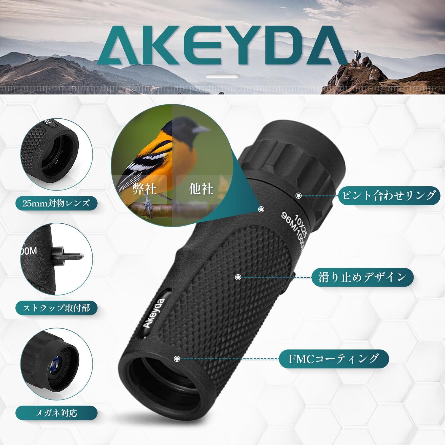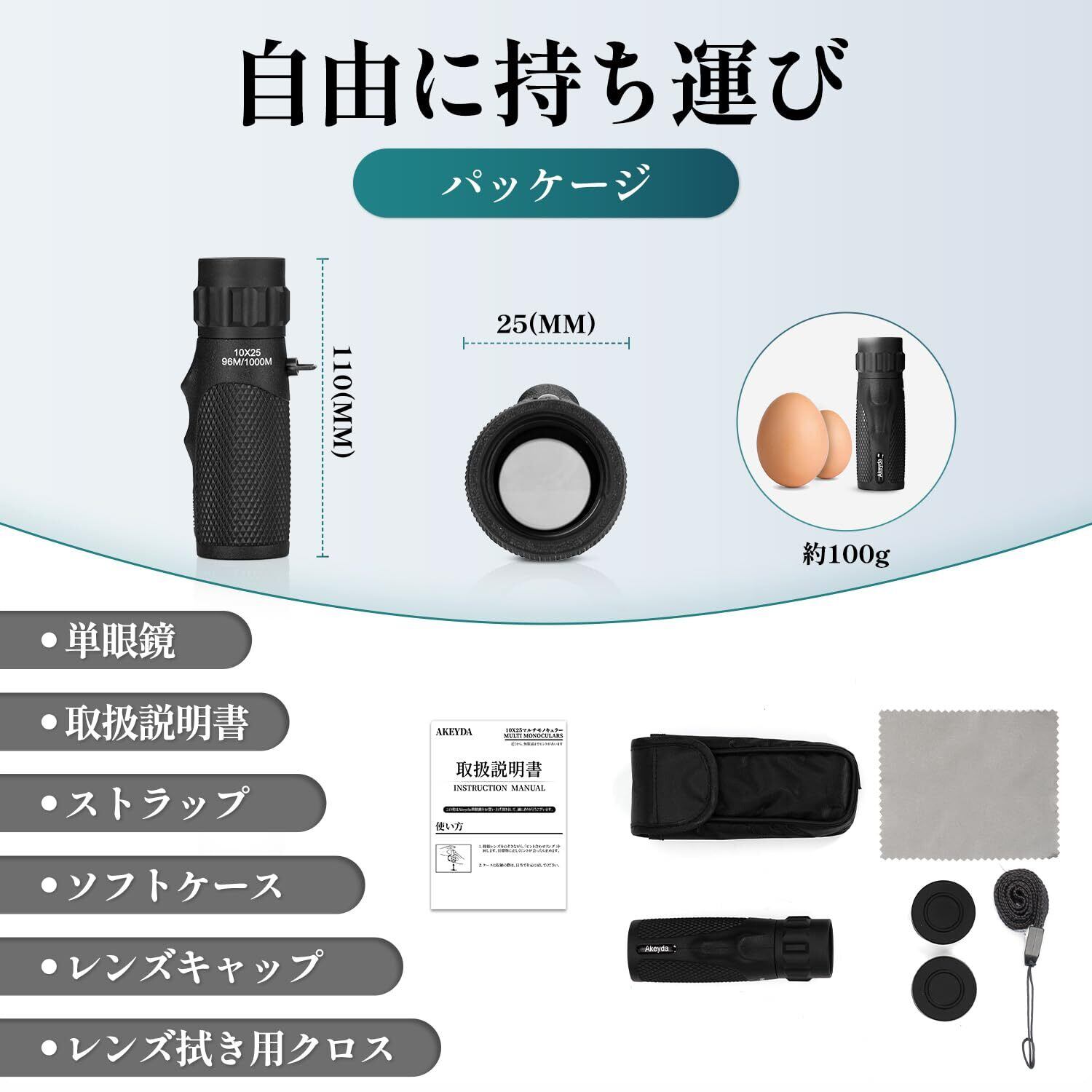 Akeyda単眼鏡 望遠鏡 10倍 単眼きょう 小型 10x25 コンパクト 軽い 小さい 便利 双眼鏡 より軽い 高倍率 看板確認 黒板小さく見えない字確認 案内図確認 旅行 山登り キャンプ 価格相応品質 モノキュラー 一眼鏡 メガネ対応 ケース ストラップ付