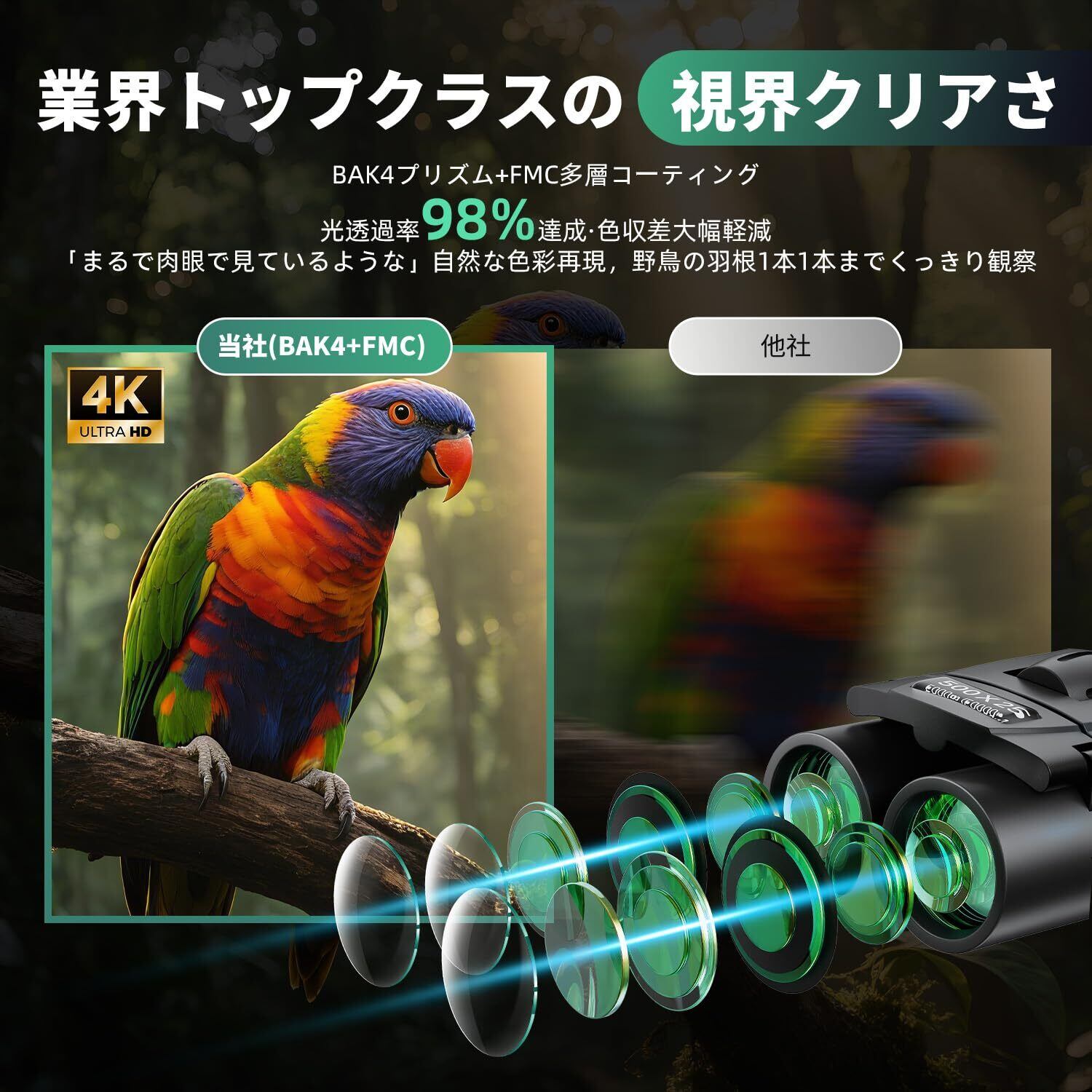 ■【BAK4プリズムとFMCコーティングでクリアな視界!】本製品はBAK4プリズムを採用し、各レンズにはFMCコーティングを施しています。これにより、光の透過率が向上し、明るく鮮明な視界を提供。どんな環境でもクリアな映像をお楽しみいただけます。